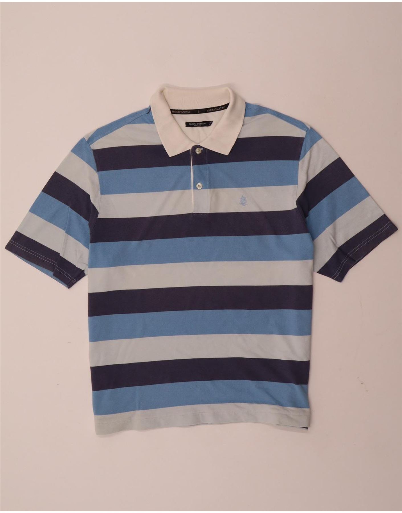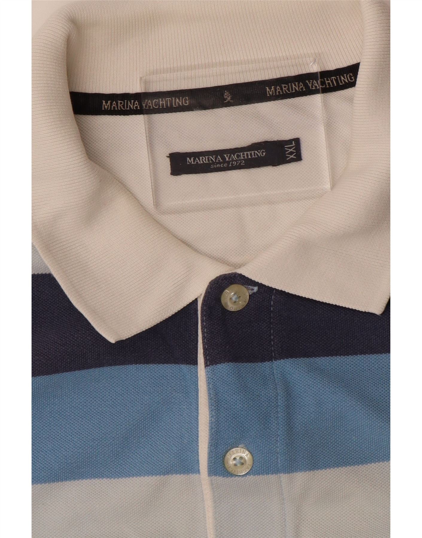 MARINA YACHTING Mens Rugby Polo Shirt 2XL Blue Striped