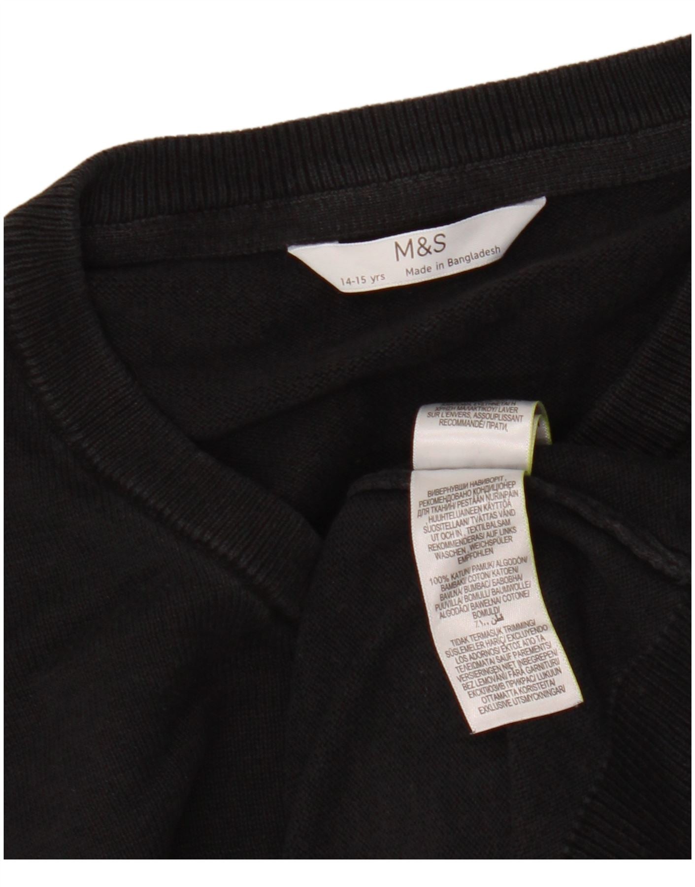 Marks & Spencer Boys V-Neck Jumper Sweater 14-15 Years Black Cotton