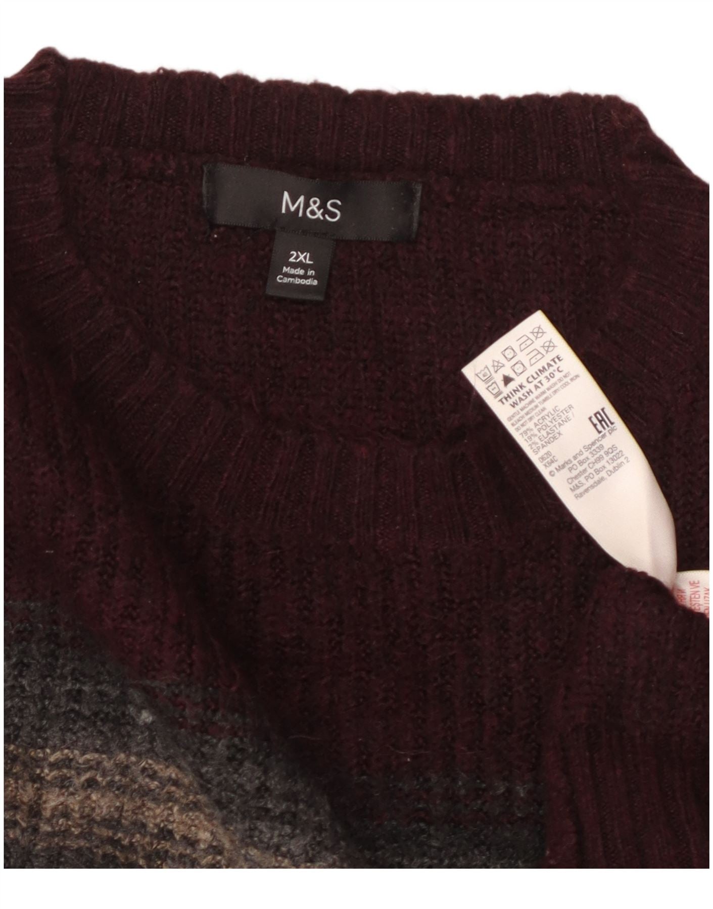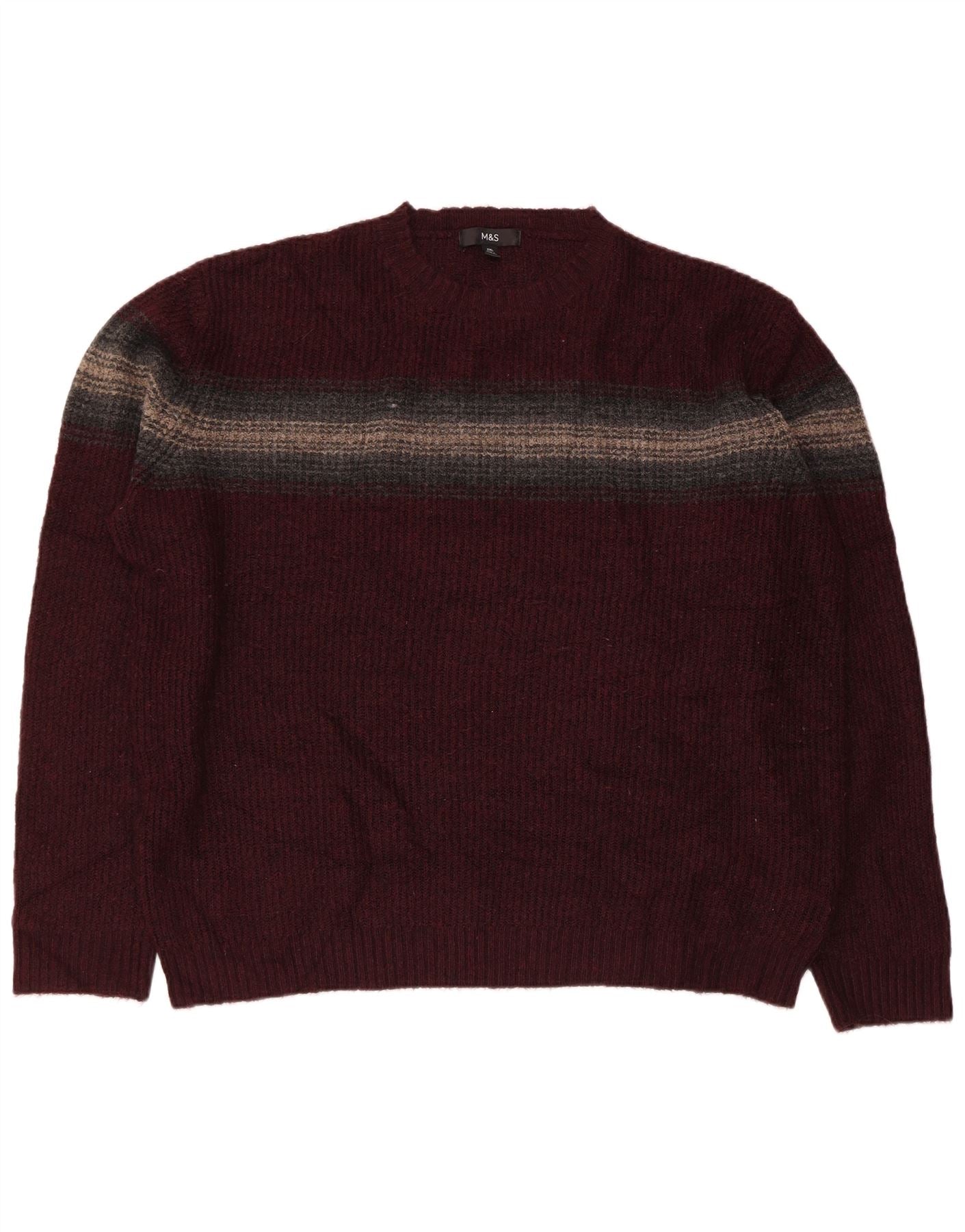 MARKS & SPENCER Mens Crew Neck Jumper Sweater 2XL Burgundy Striped Acrylic