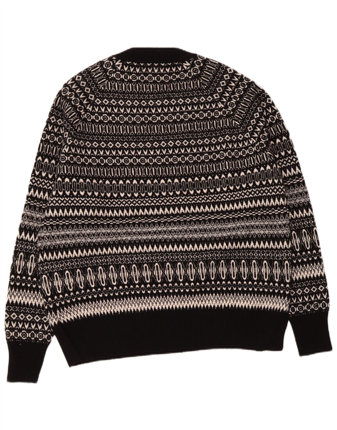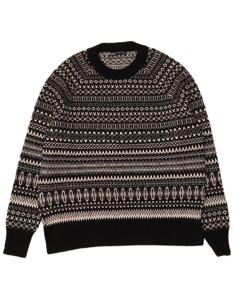 MARKS & SPENCER Mens Crew Neck Jumper Sweater Medium Black Fair Isle