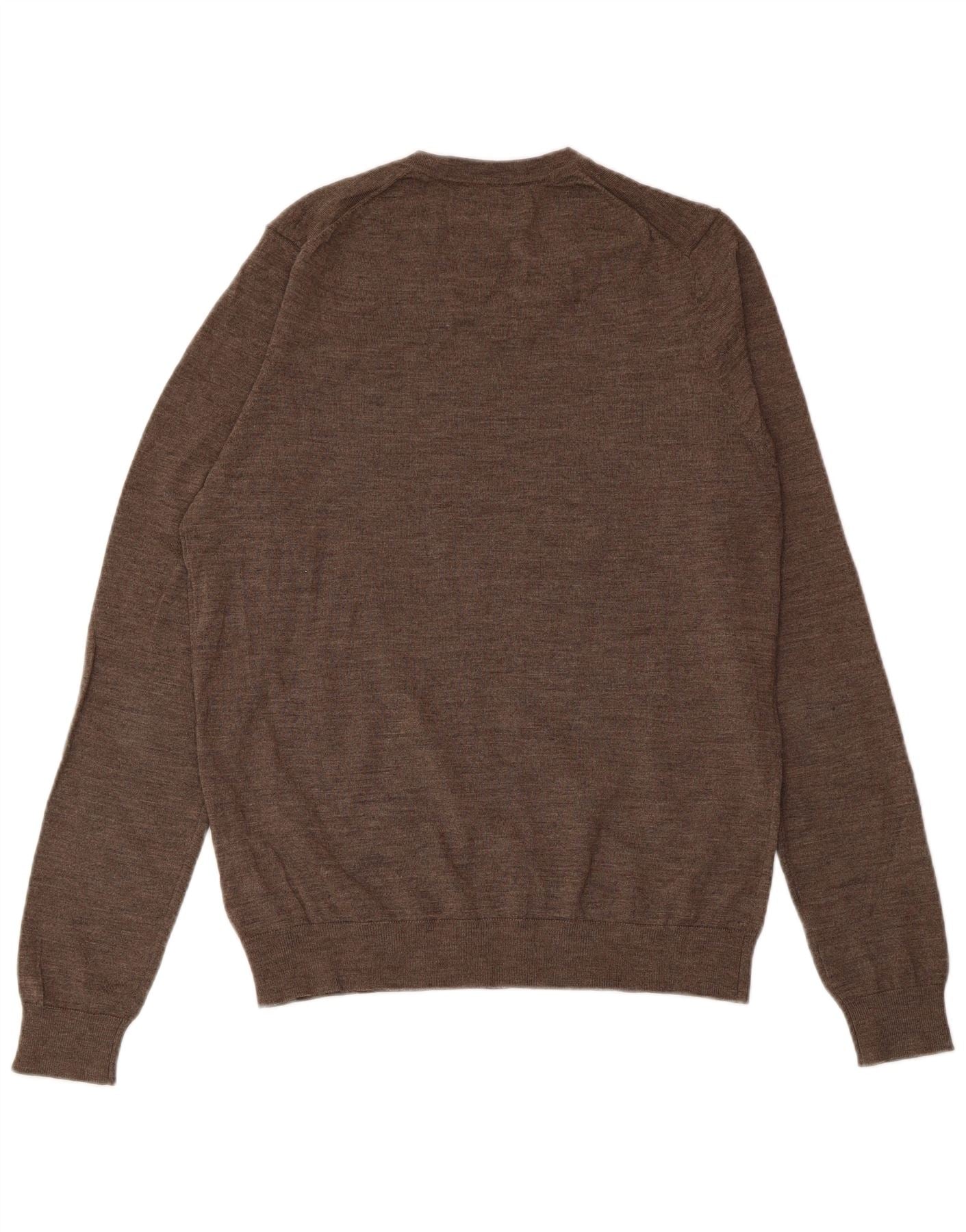 MARKS & SPENCER Mens V-Neck Jumper Sweater Medium Brown Merino Wool