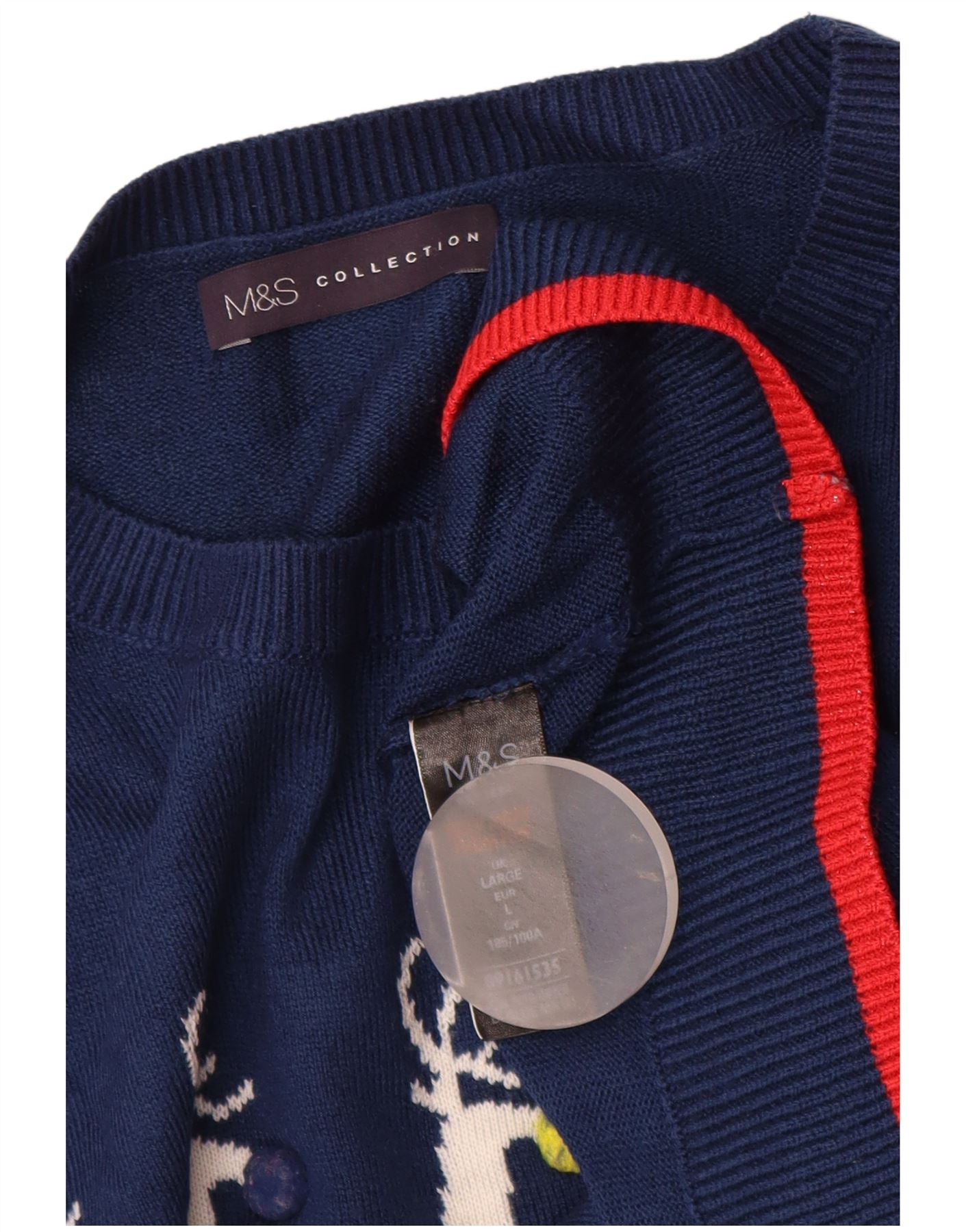 MARKS & SPENCER Womens Boat Neck Jumper Sweater UK 16 Large Navy Blue
