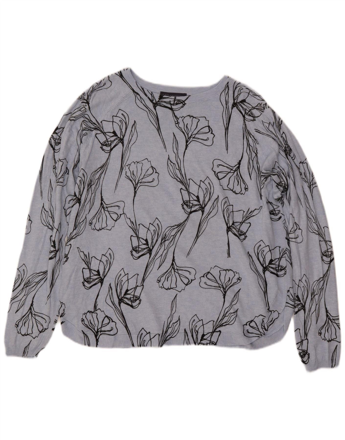 MARKS & SPENCER Womens Boat Neck Jumper Sweater UK 18 XL Blue Floral