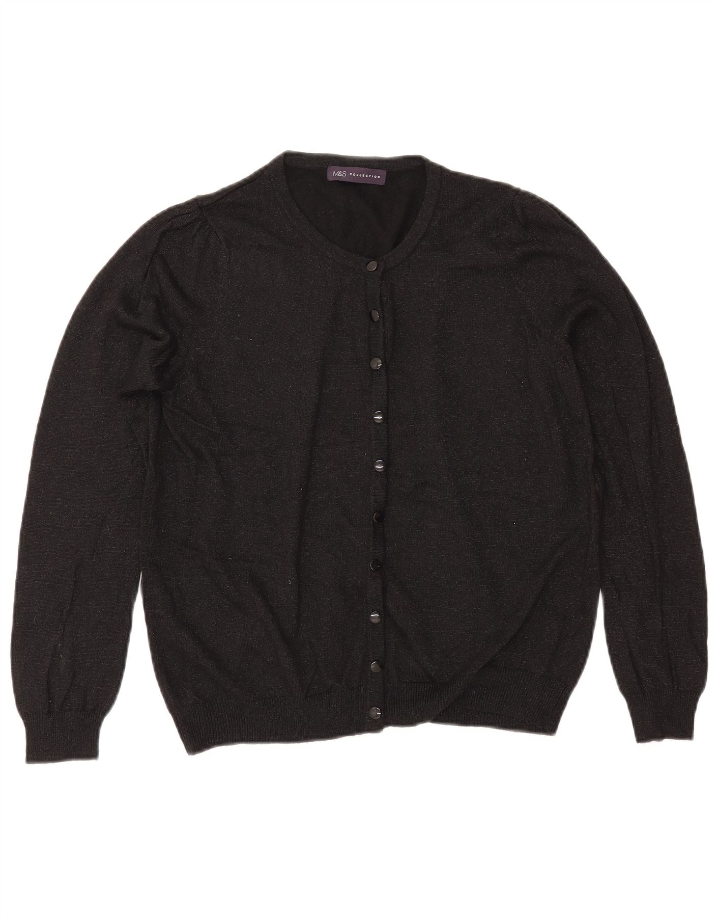 MARKS & SPENCER Womens Cardigan Sweater UK 14 Medium Black Flecked