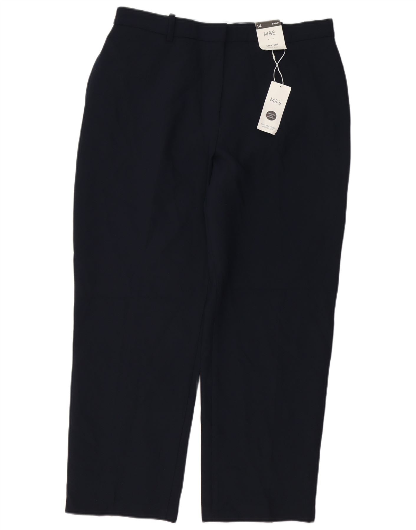 MARKS & SPENCER Womens Chino Trousers UK 14 Large W34 L27 Navy Blue