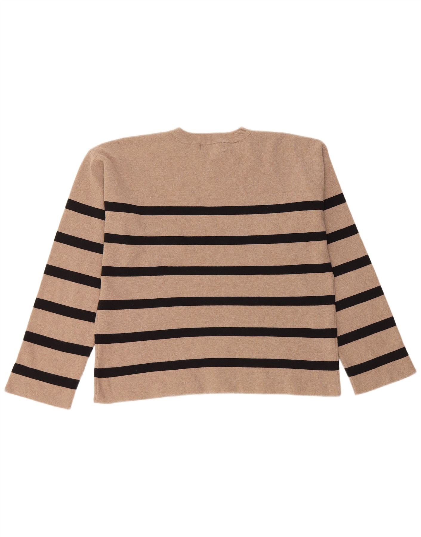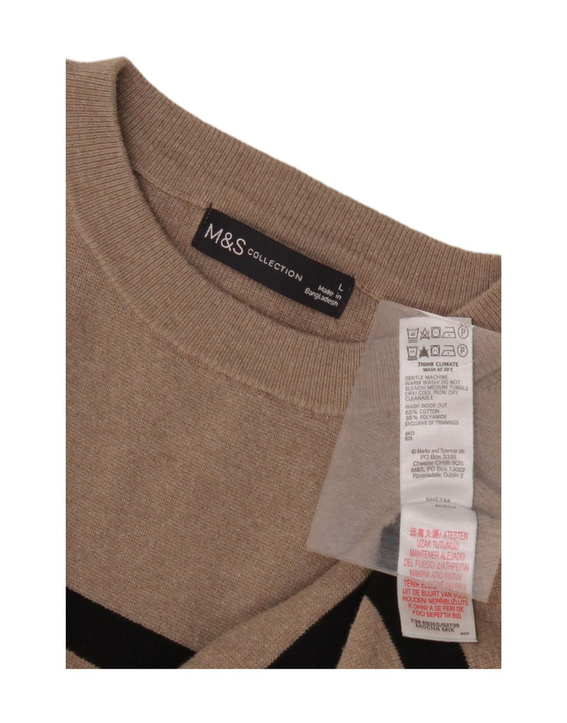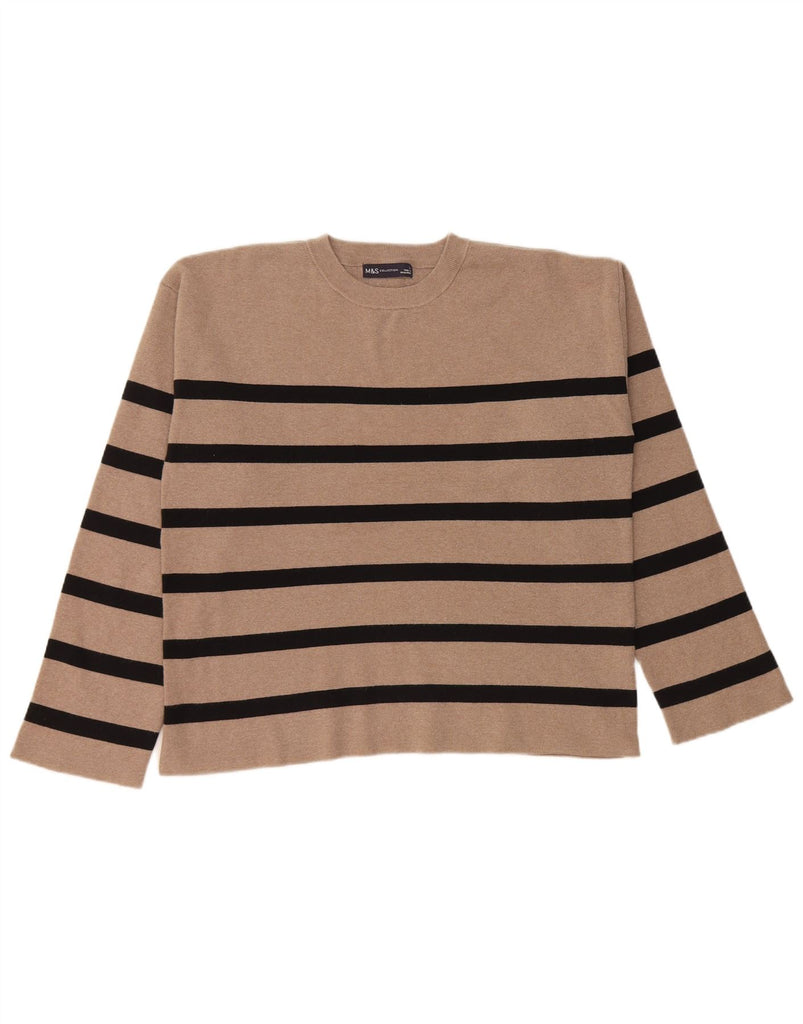 MARKS & SPENCER Womens Crew Neck Jumper Sweater UK 16 Large Beige Striped
