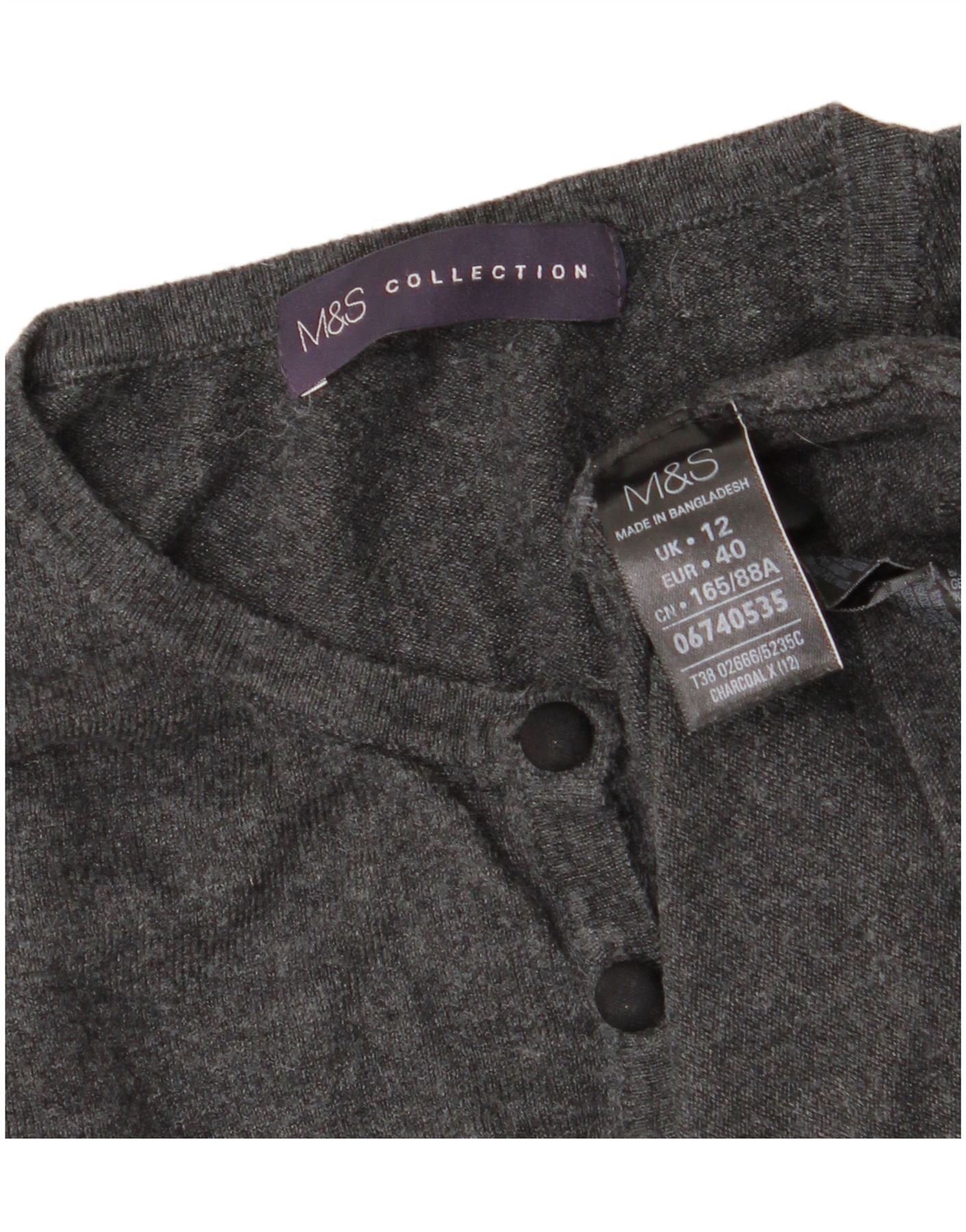 MARKS & SPENCER Womens Crop Cardigan Sweater UK 12 Medium Grey Floral