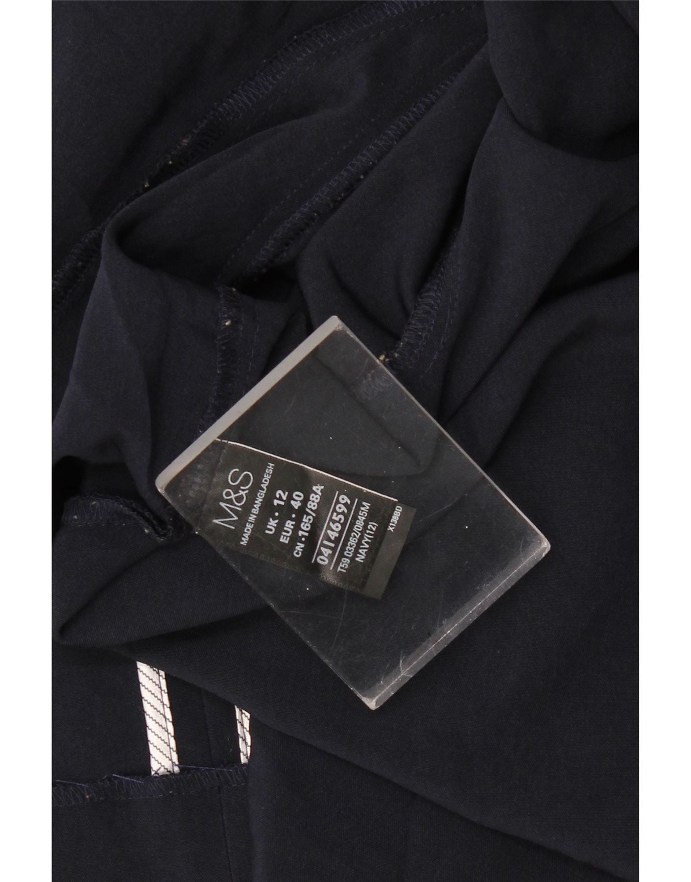 - AI Description: This Marks & Spencer womens blazer jacket is crafted from soft navy blue jersey fabric, offering a comfortable stretch. It features a collared neckline and an open front design for a relaxed yet smart silhouette. Long sleeves provide full coverage. Zipped pockets add a practical and modern accent. The regular fit ensures ease of movement and a versatile style.