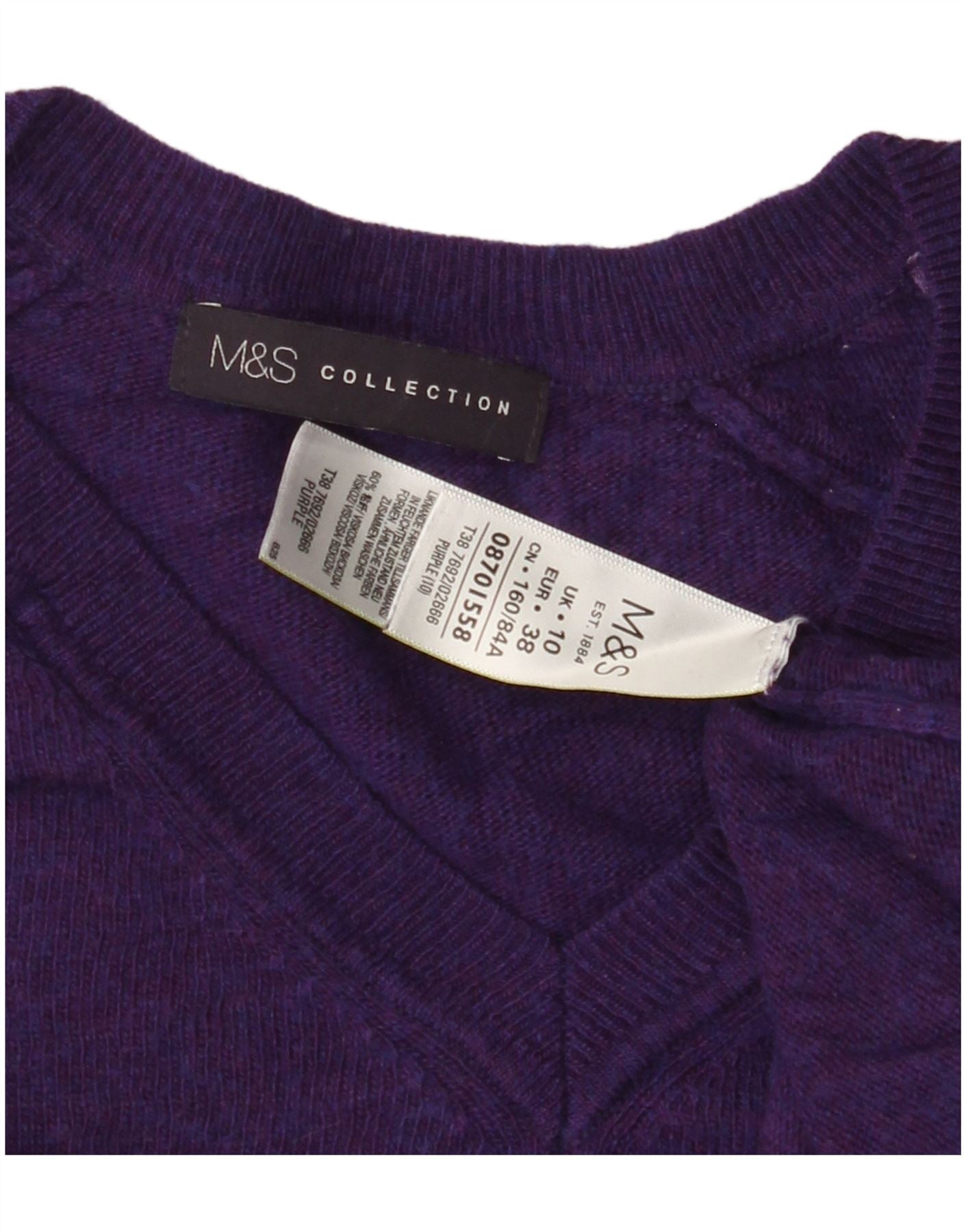 MARKS & SPENCER Womens Oversized V-Neck Jumper Sweater UK 10 Small Purple
