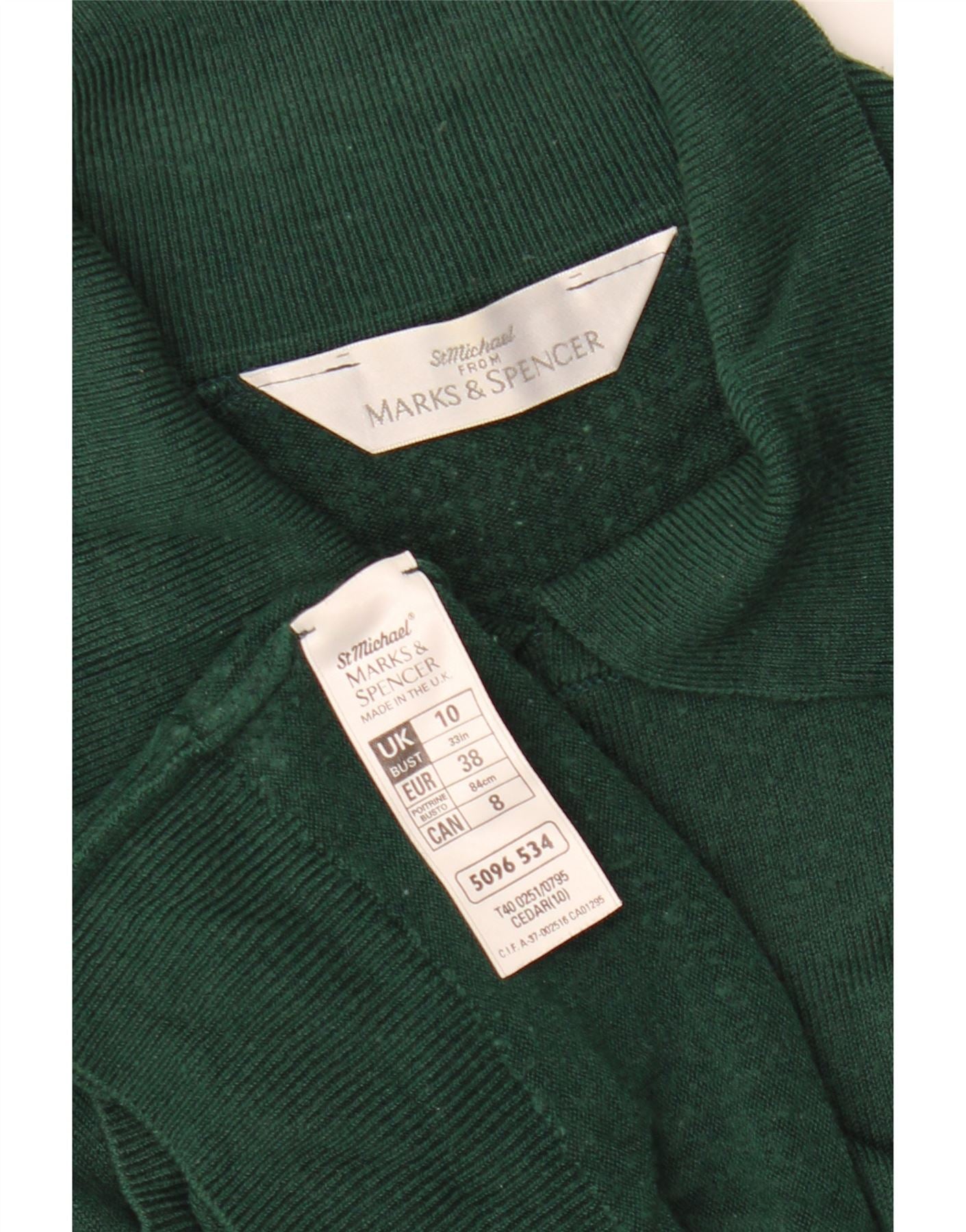 MARKS & SPENCER Womens Polo Neck Jumper Sweater UK 10 Small Green Acrylic