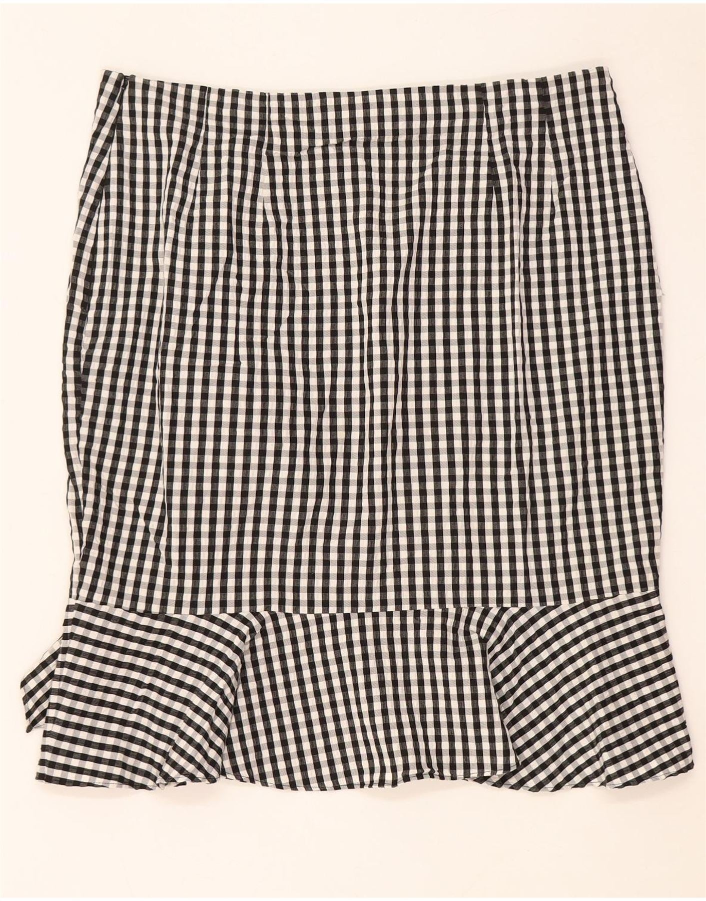 Marks & Spencer Womens Ruffle Skirt UK 16 Large W34 Black Gingham Viscose