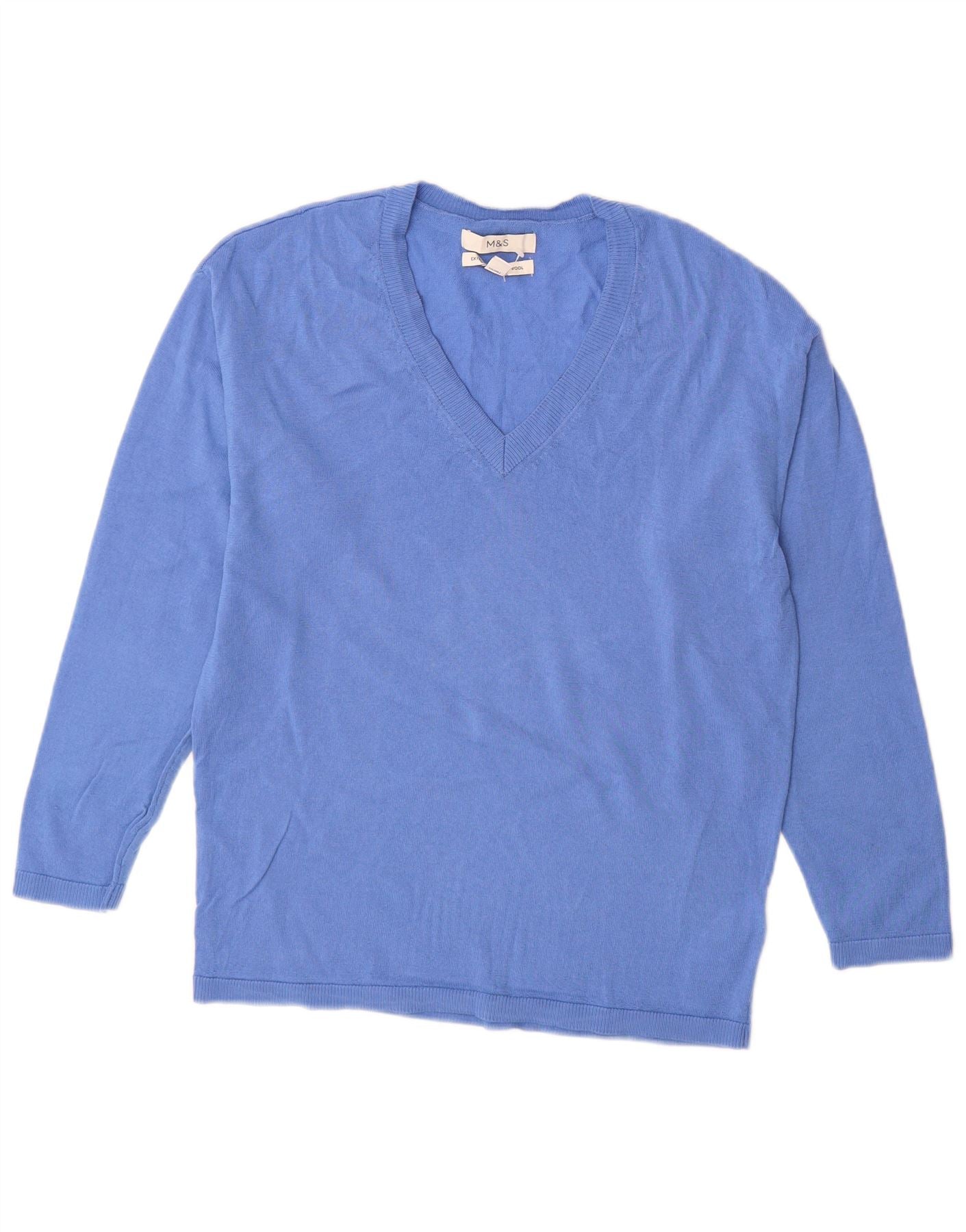 Marks & Spencer Womens V-Neck Jumper Sweater UK 6 XS Blue Merino Wool
