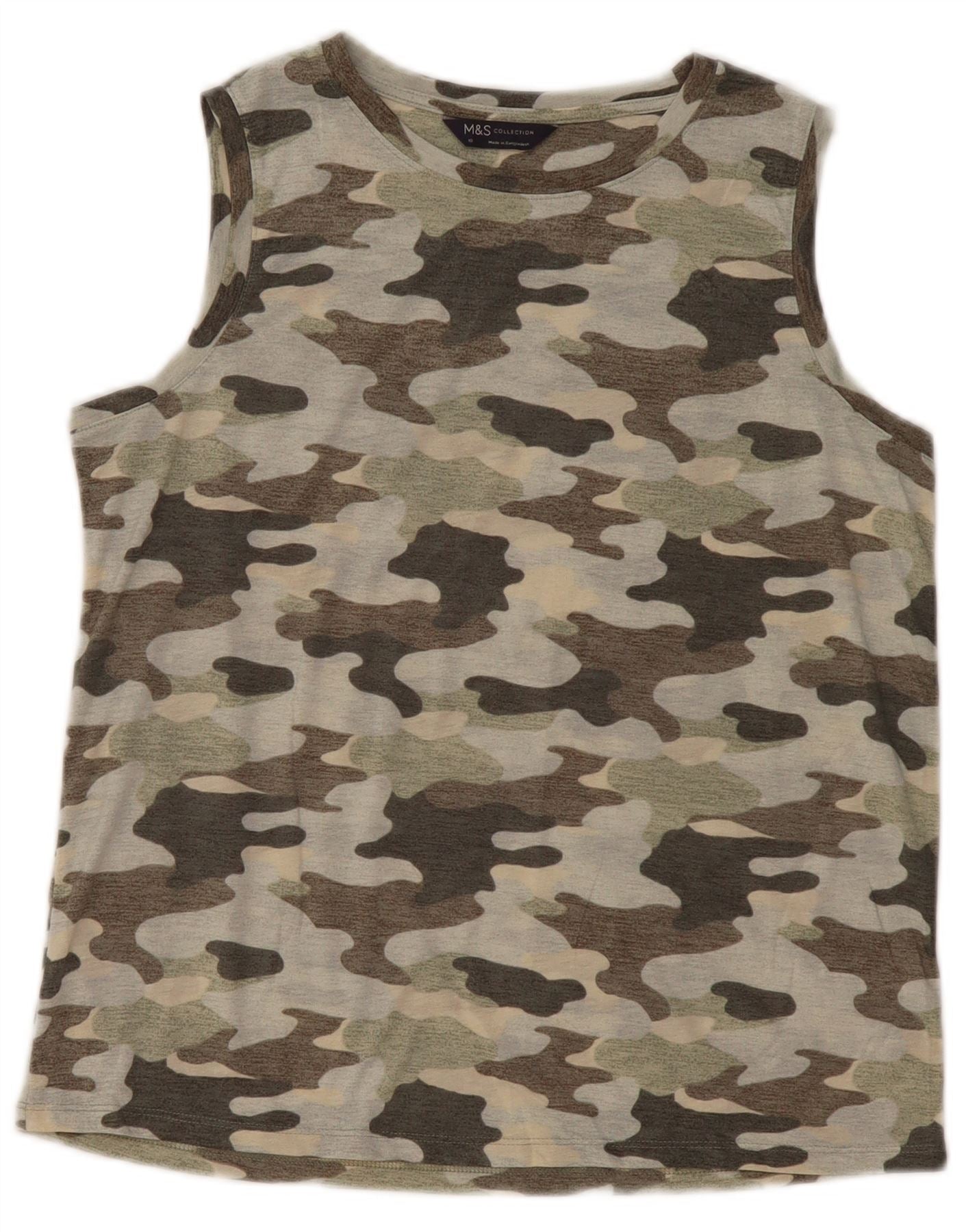 MARKS & SPENCER Womens Vest Top UK 10 Small Khaki Camouflage Polyester