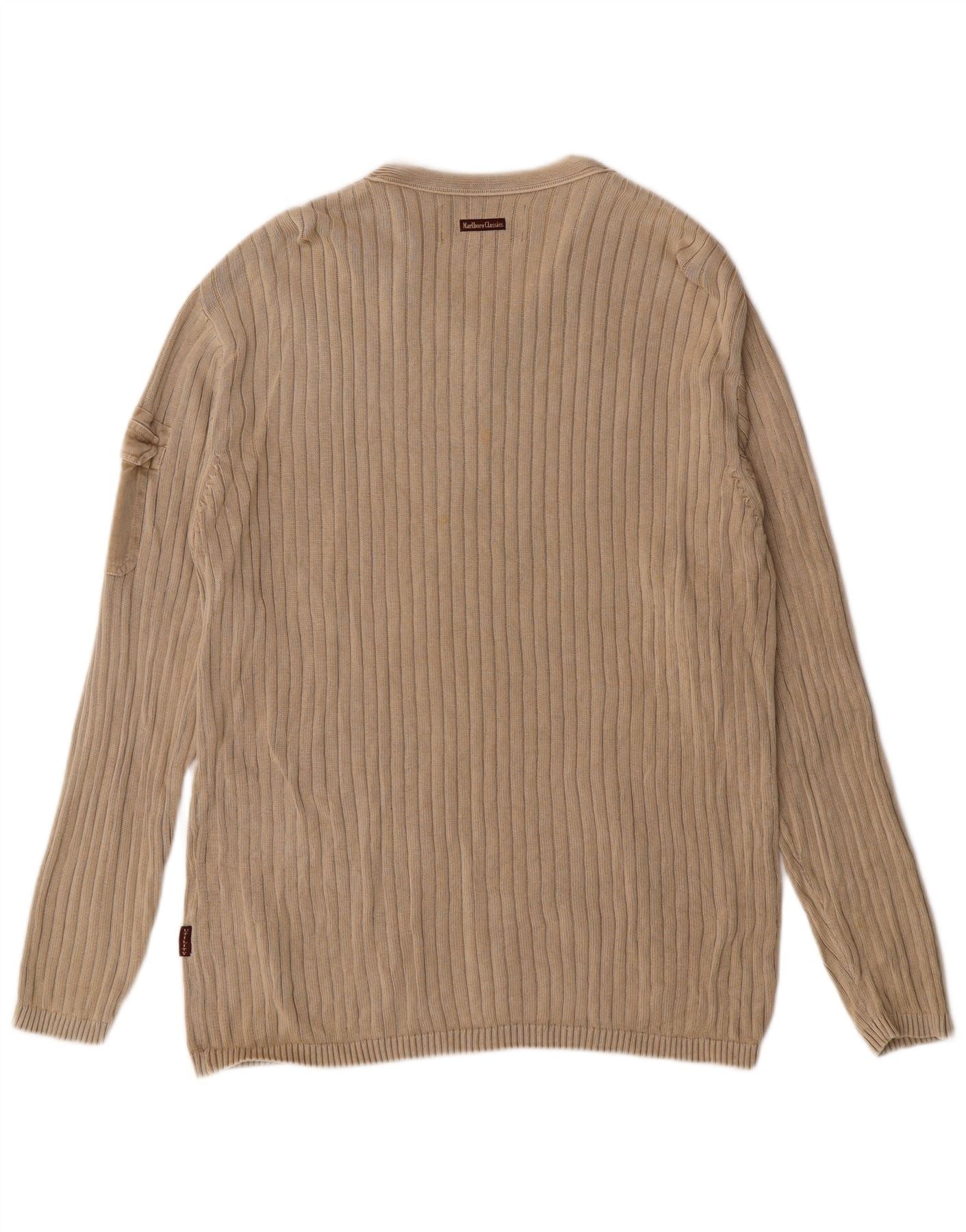 Marlboro Classics Mens V-Neck Jumper Sweater Large Beige Cotton Classic