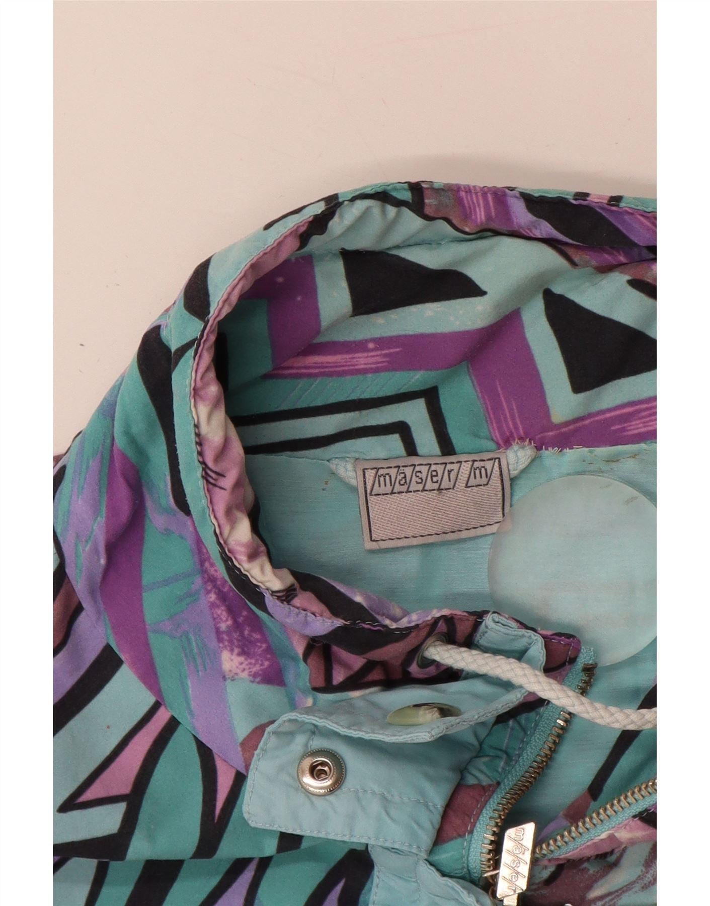 Maser M Womens Oversized Raincoat UK 10 Small Turquoise Geometric