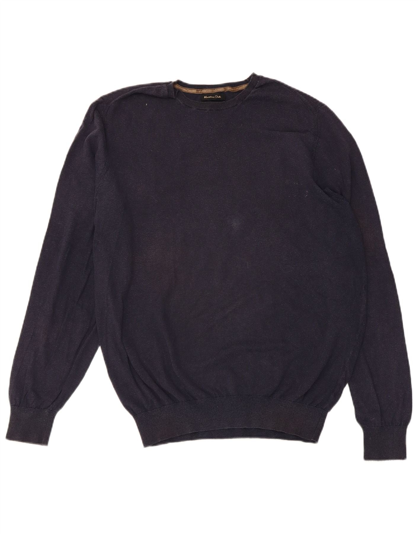 MASSIMO DUTTI Mens Crew Neck Jumper Sweater Medium Navy Blue Cotton