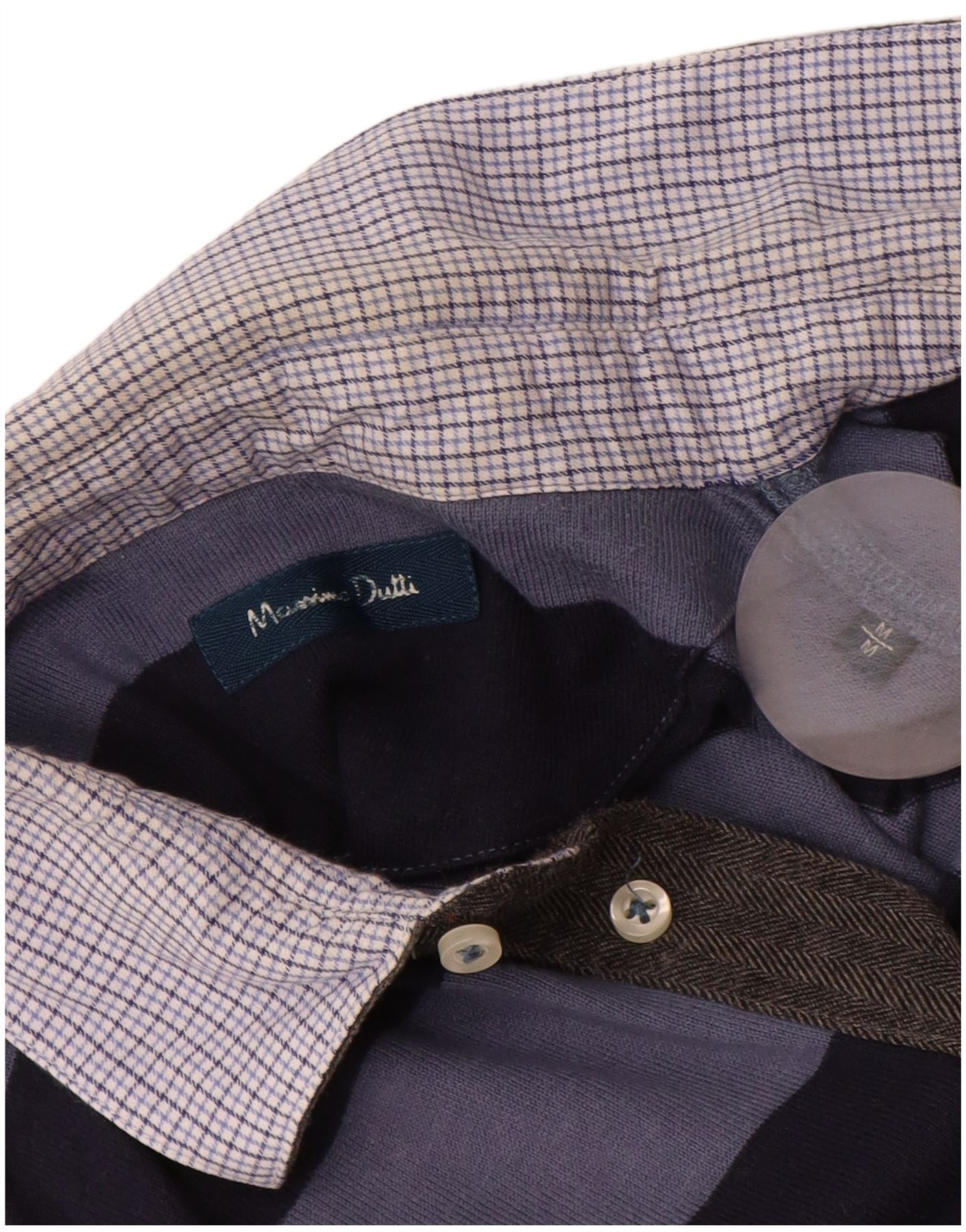 MASSIMO DUTTI Mens Long Sleeve Rugby Polo Shirt Medium Navy Blue Striped