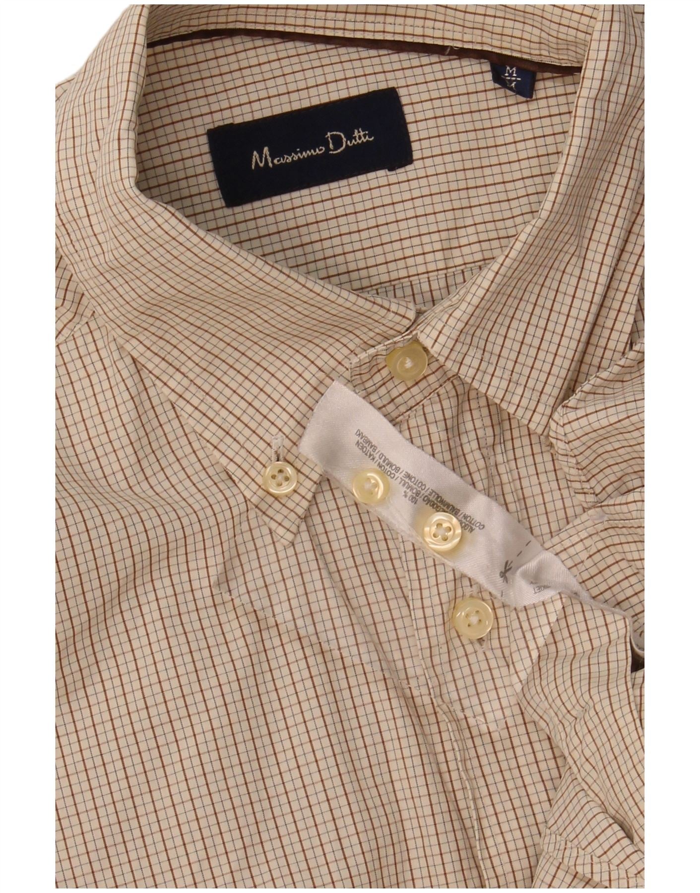 MASSIMO DUTTI Mens Shirt Medium Beige Check Cotton