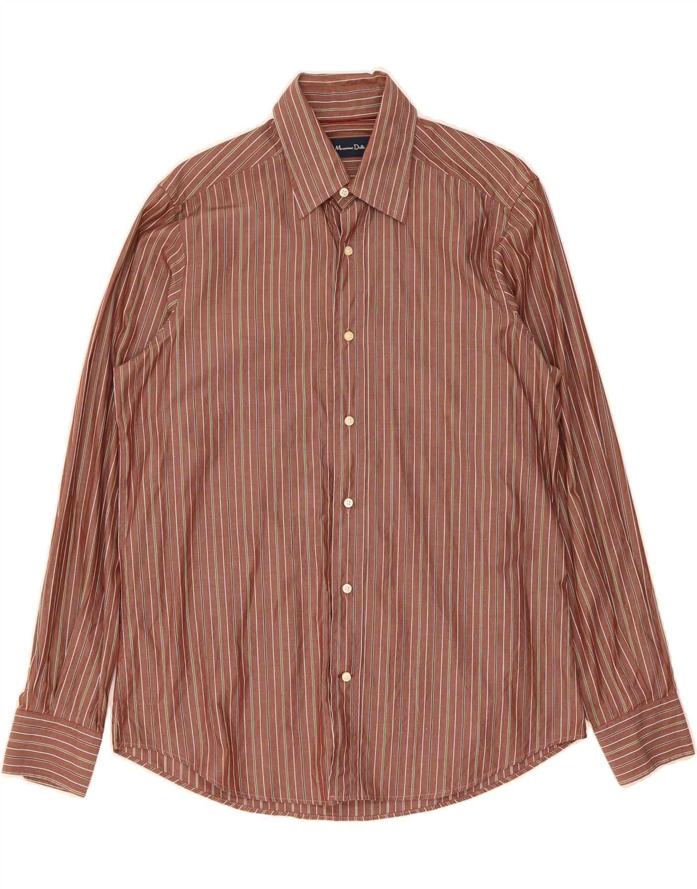 MASSIMO DUTTI Mens Shirt Size 40 Medium Brown Striped Cotton