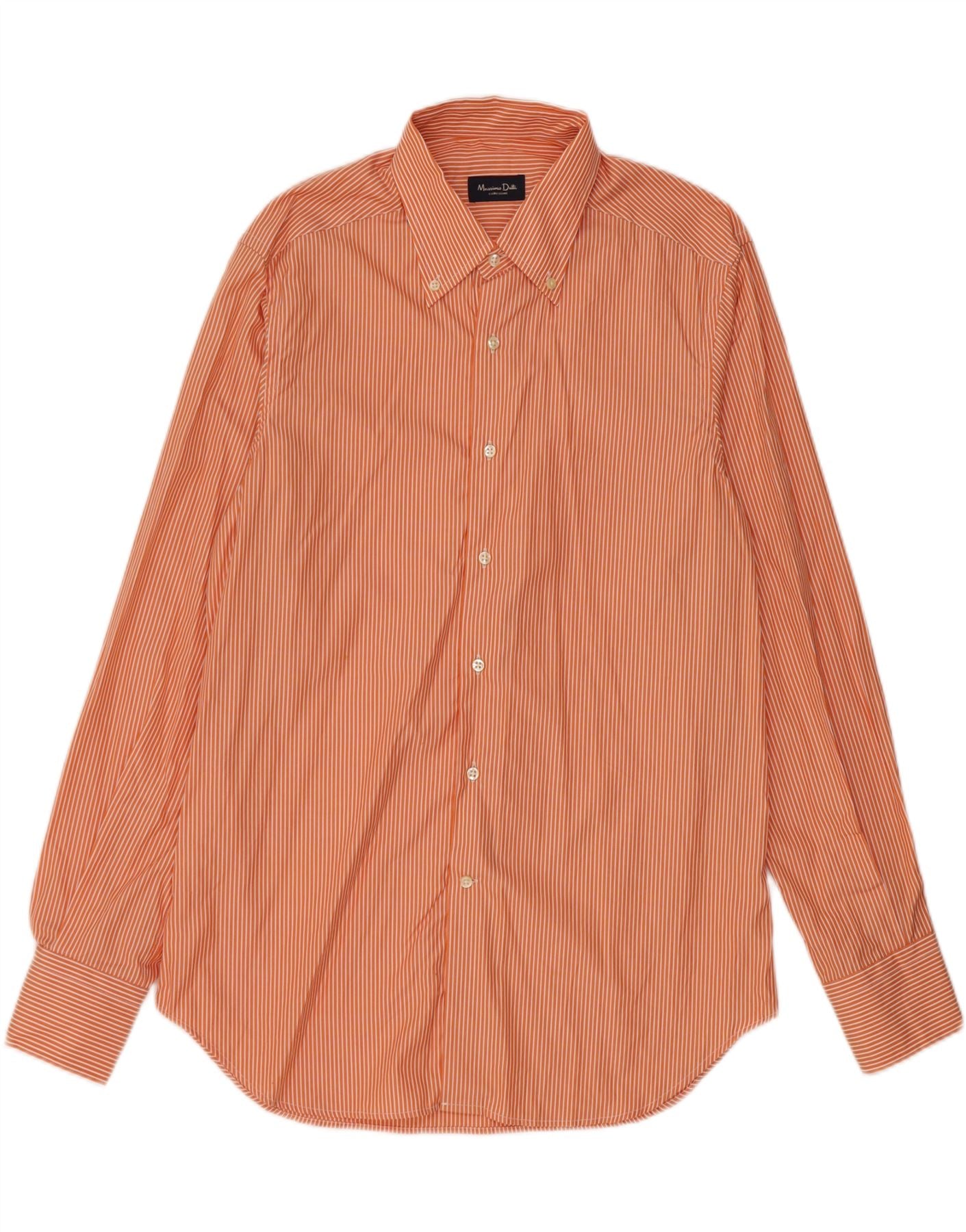 MASSIMO DUTTI Mens Shirt Size 43 17 XL Orange Pinstripe