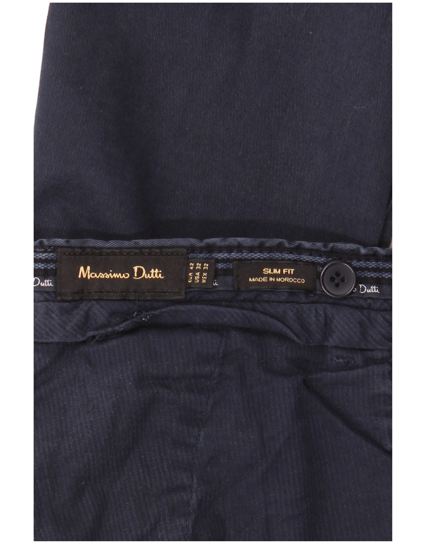 MASSIMO DUTTI Mens Slim Fit Chino Trousers EU 42 Large W32 L34 Navy Blue