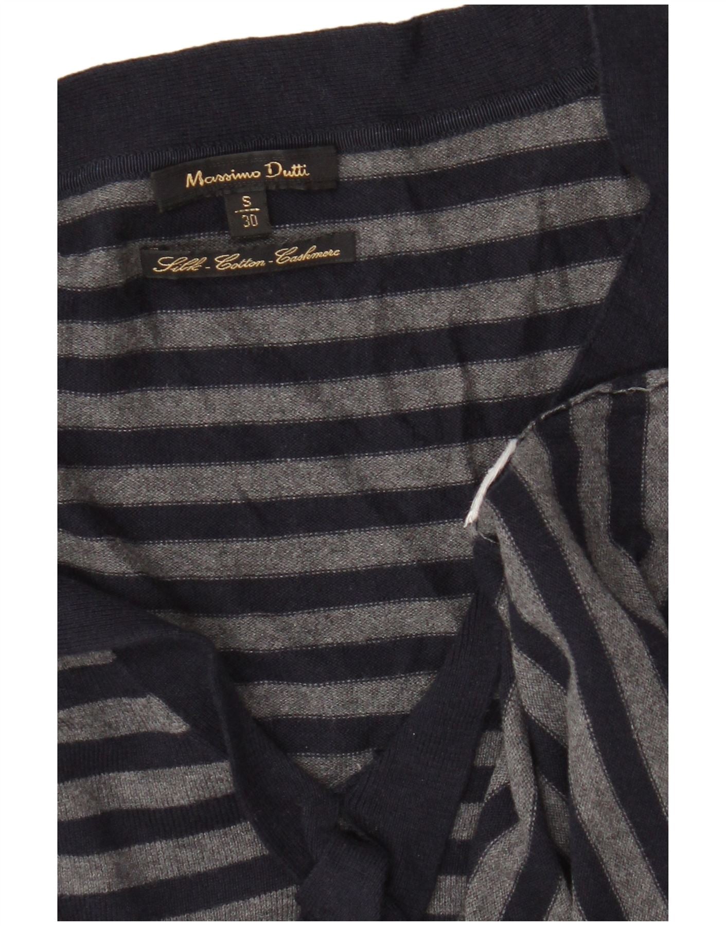 Massimo Dutti Womens V-Neck Jumper Sweater UK 8 Small Navy Blue Striped