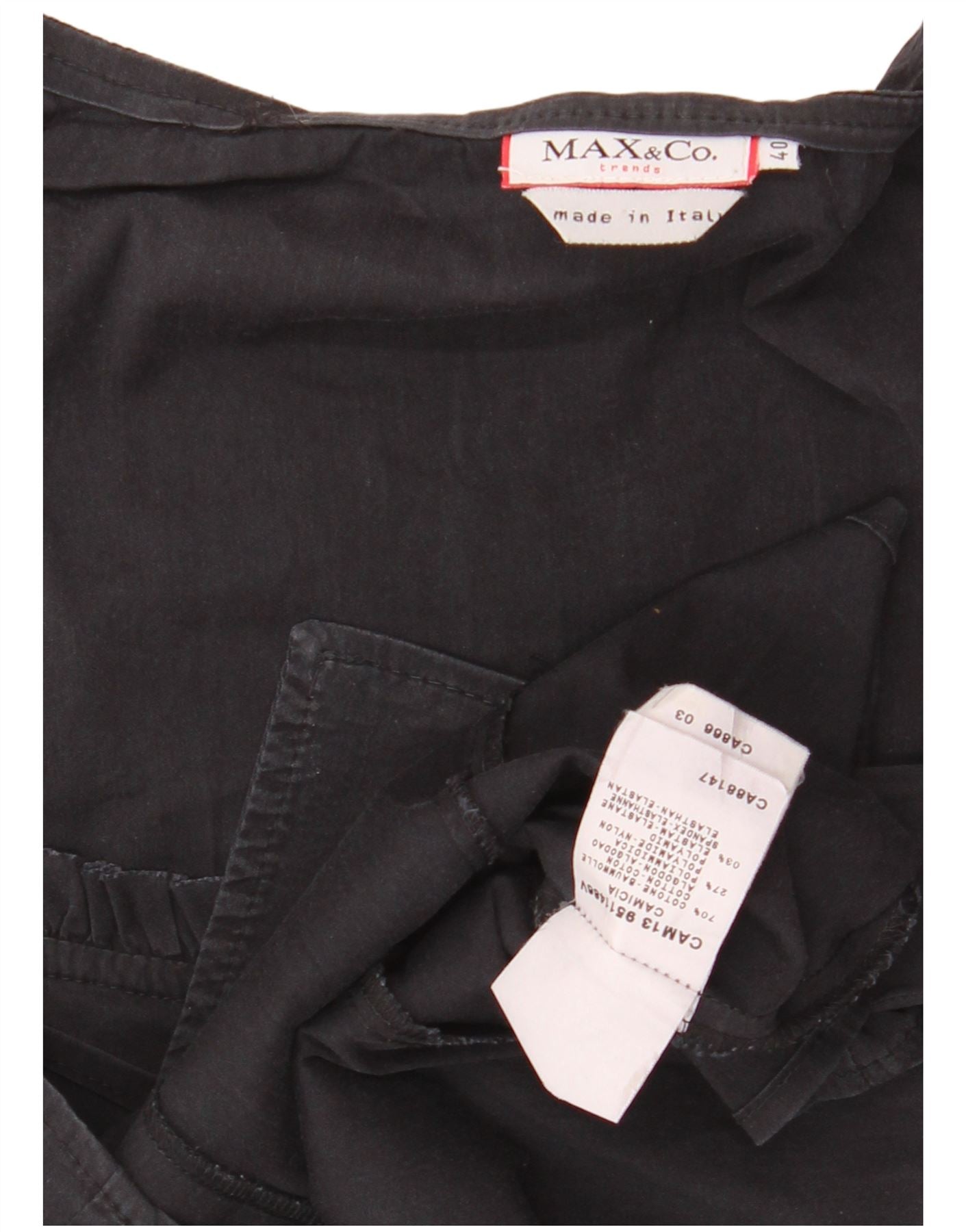 MAX & CO. Womens Ruffle Front Crop Shirt Blouse IT 40 Small Black Cotton