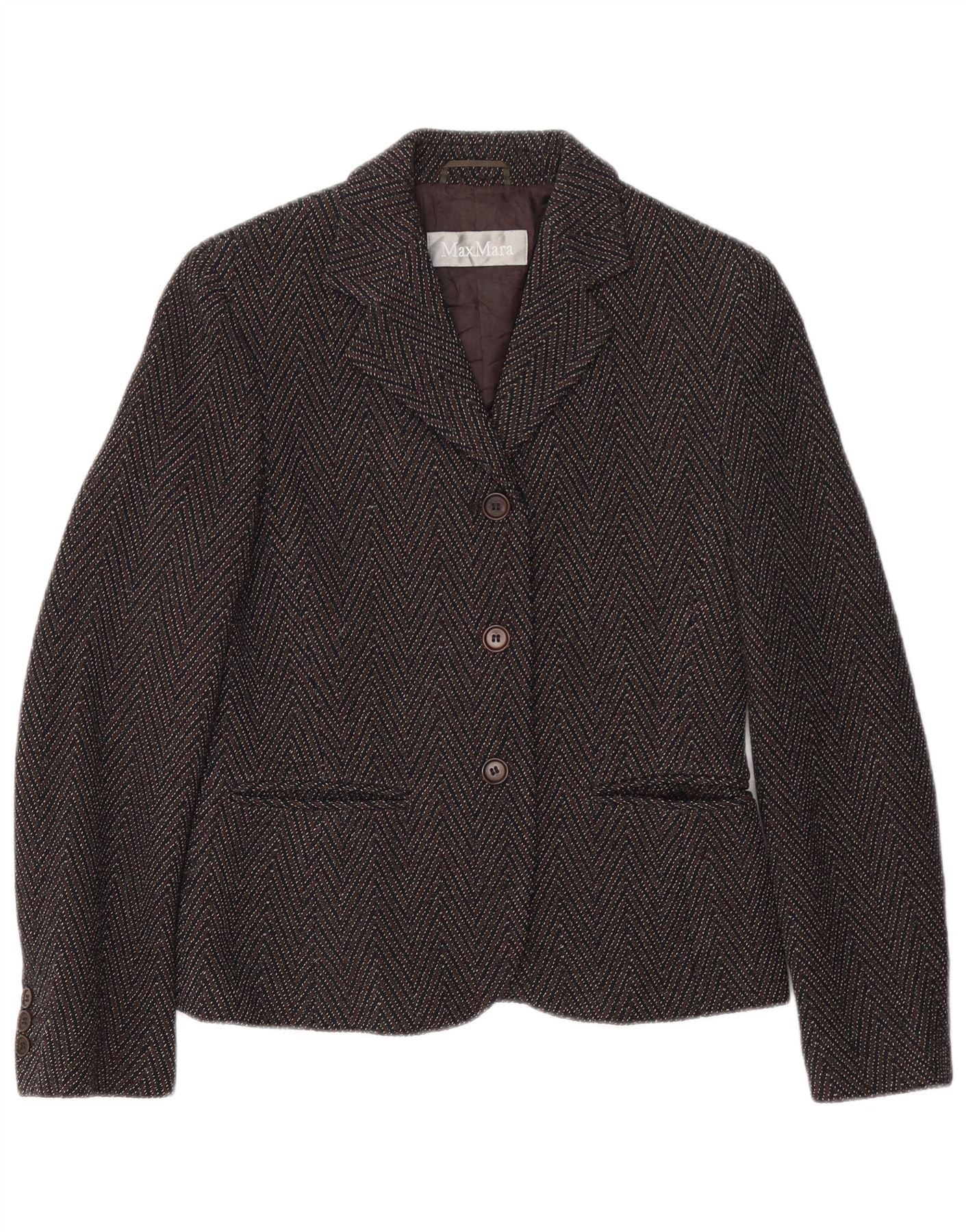 Max Mara Womens 3 Button Blazer Jacket UK 8 Small Brown Chevron Wool