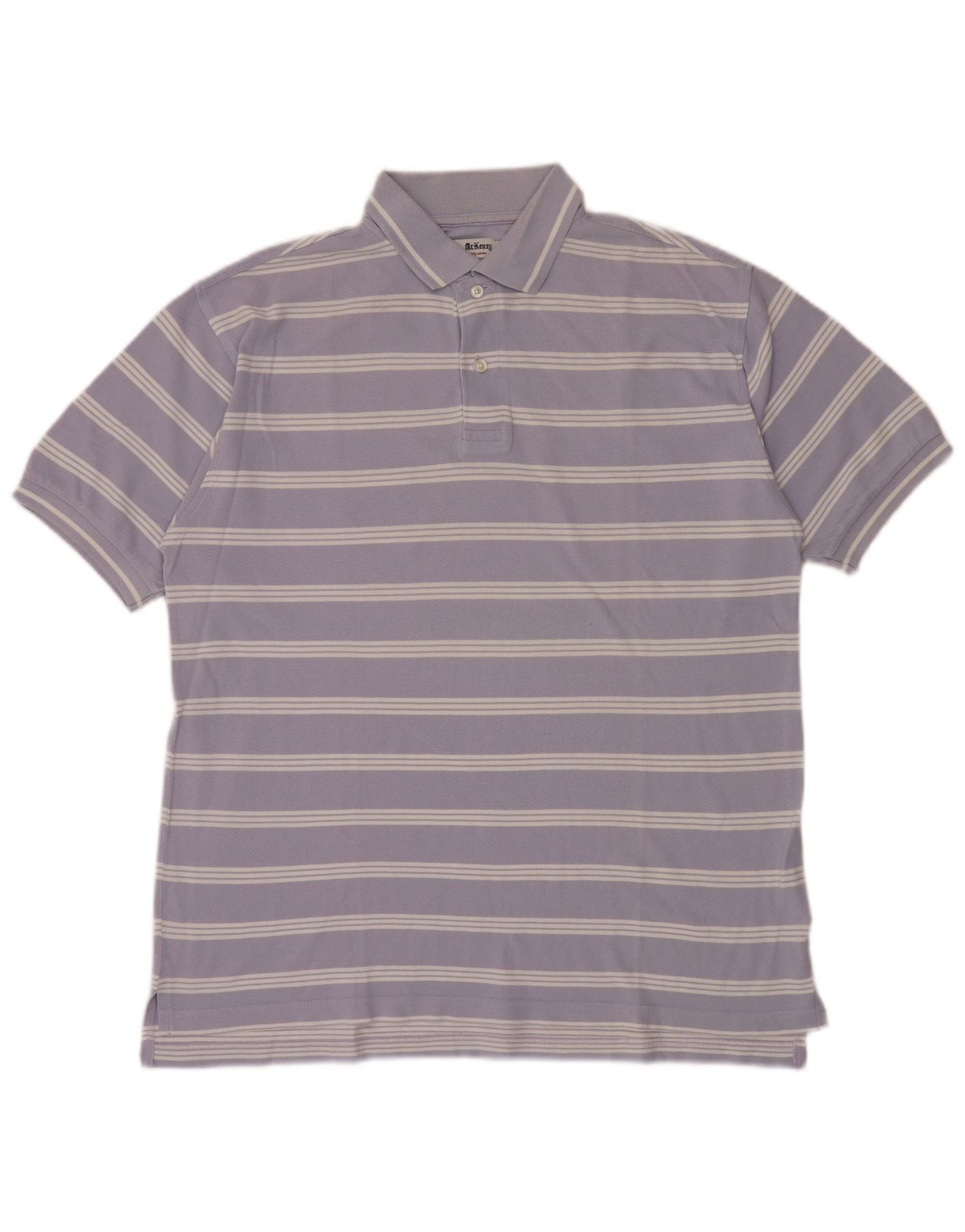 MCKENZY Mens Polo Shirt Large Purple Striped Cotton
