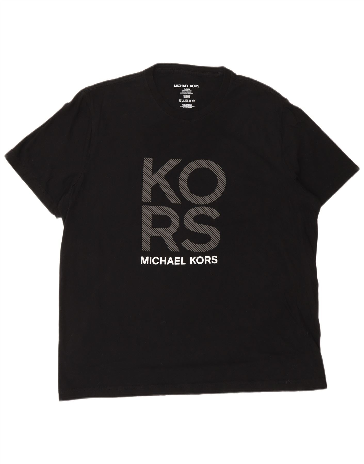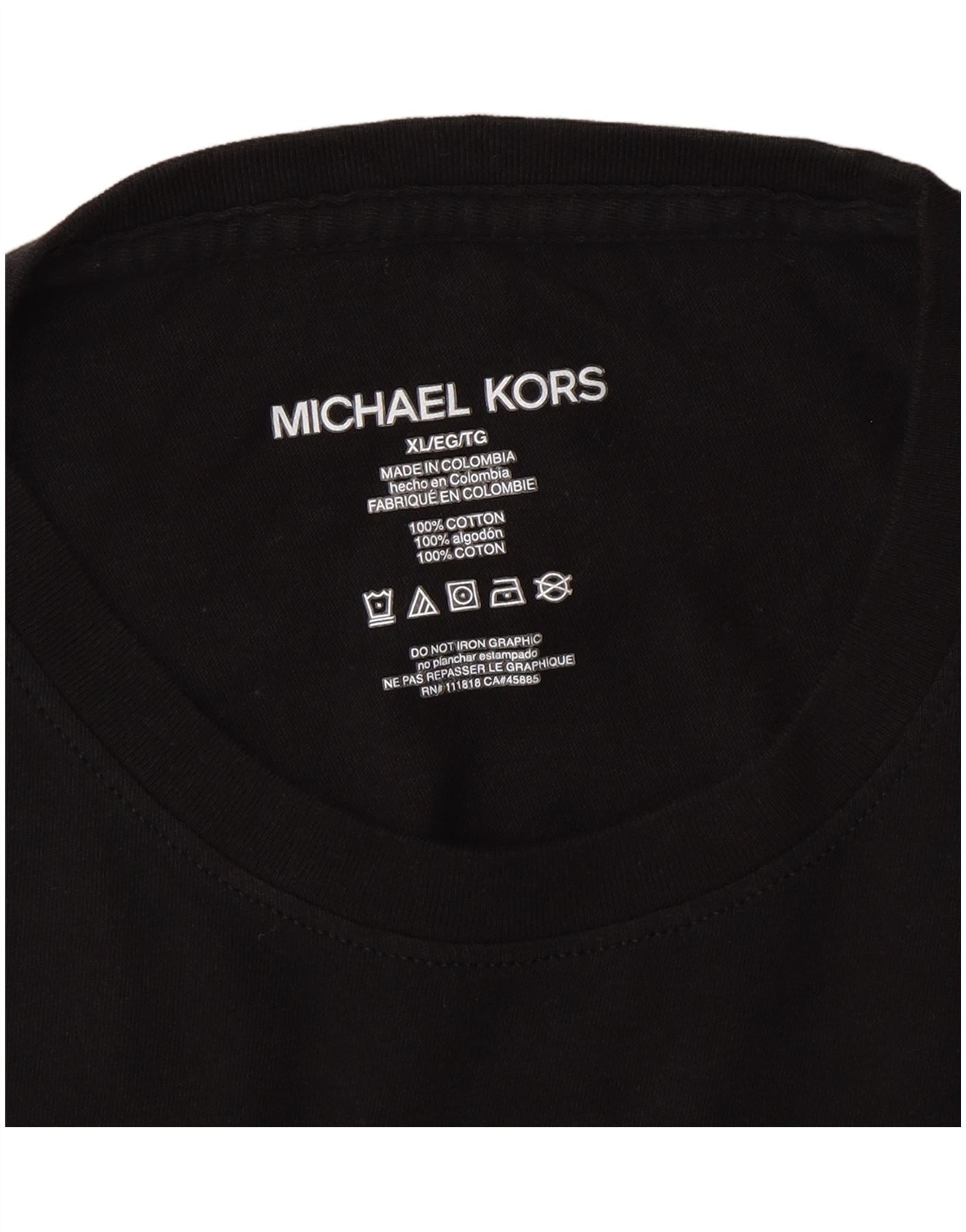 MICHAEL KORS Mens Graphic T-Shirt Top XL Black Cotton