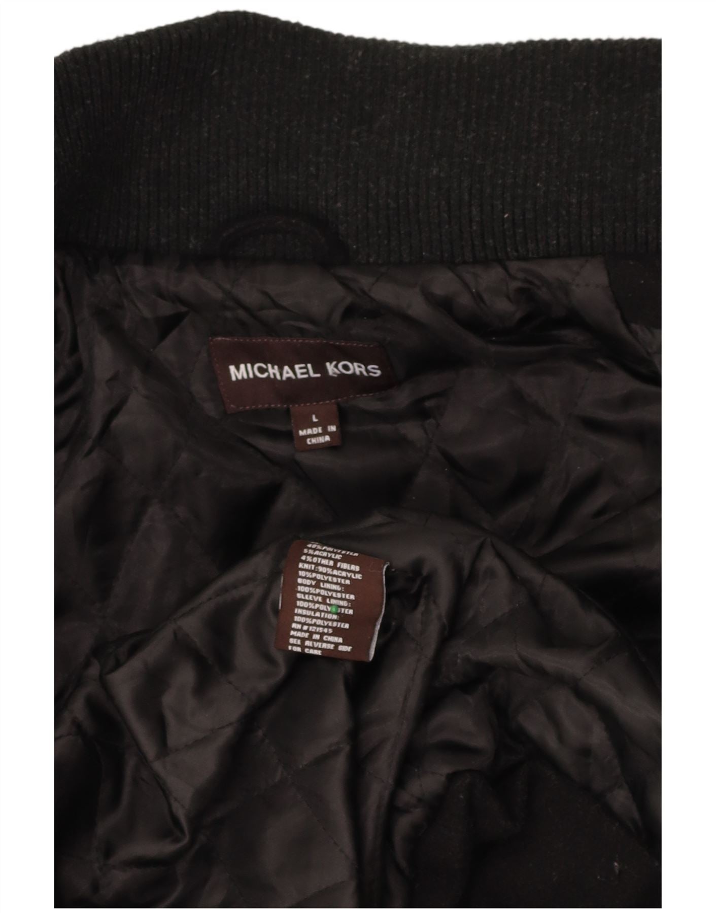 - AI Description: This Michael Kors mens Utility Jacket is crafted from a rich black wool blend. Its woven, quilted texture provides warmth and a refined feel. The collared neckline and button closure offer a classic, structured look. Long sleeves and a regular fit ensure comfortable wear. Practical pockets and a full lining complete this versatile, stylish piece.