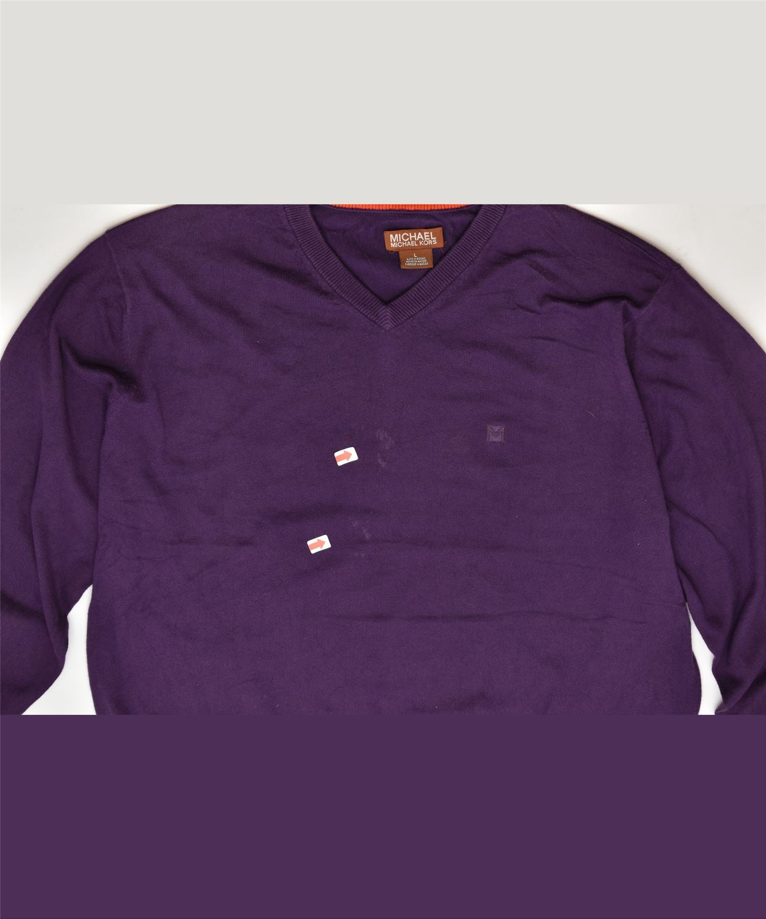 MICHAEL KORS Mens V-Neck Jumper Sweater Large Purple Cotton