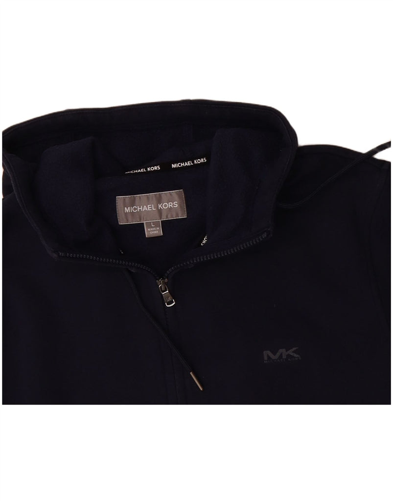 MICHAEL KORS Mens Zip Hoodie Sweater Large Navy Blue Cotton