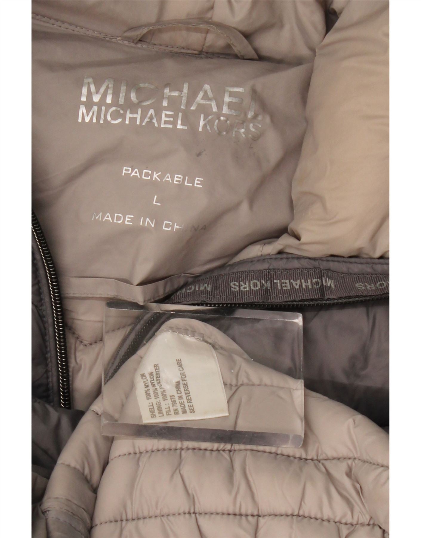 MICHAEL KORS Womens Hooded Padded Coat UK 16 Large Grey Nylon