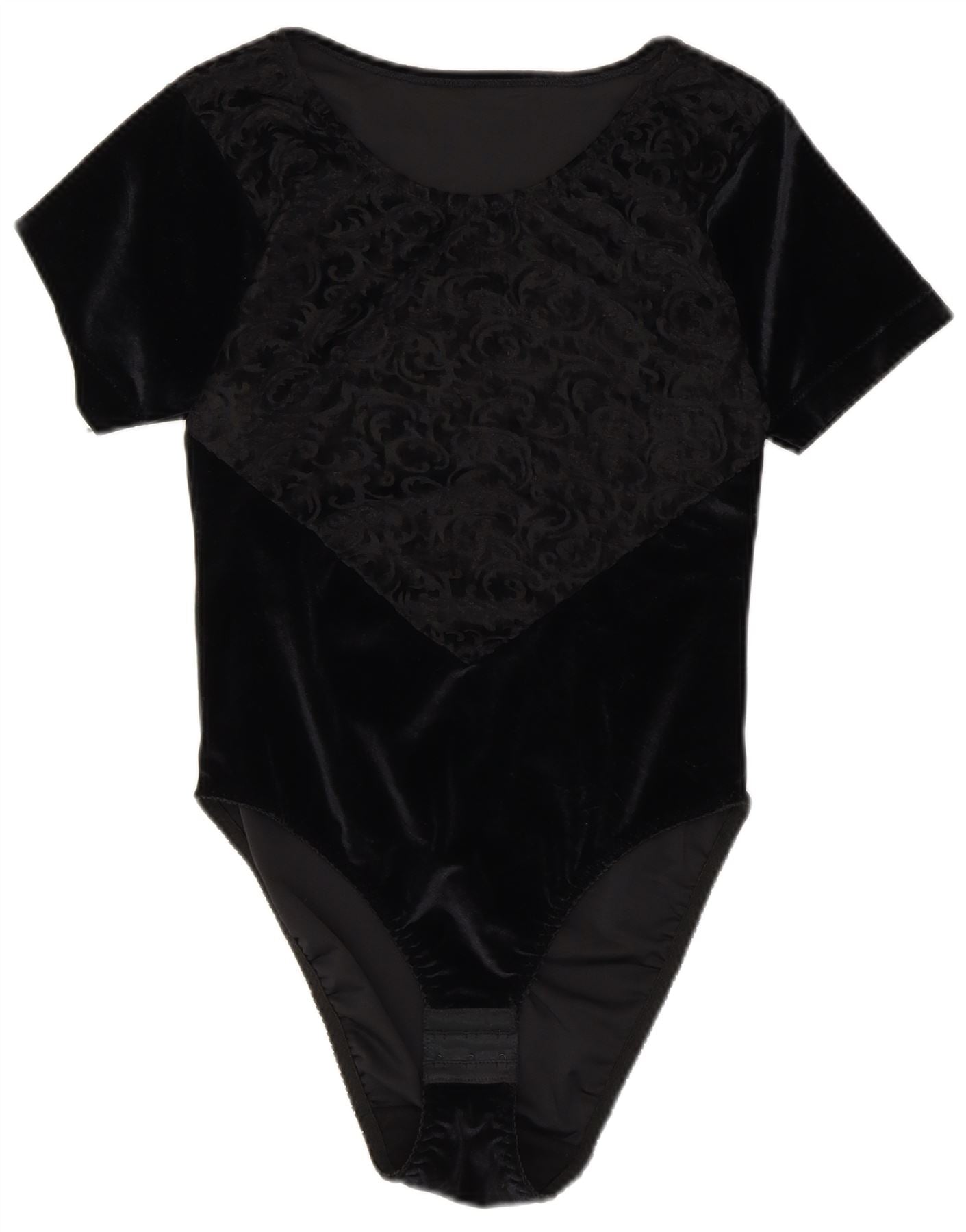 MICHELLE Womens Velvet Bodysuit UK 14 Medium Black Paisley Polyester