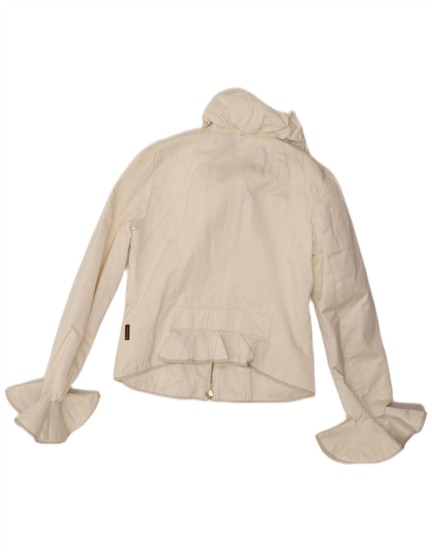 MONCLER Womens Crop Bomber Jacket Size 2 Medium Off White Polyester