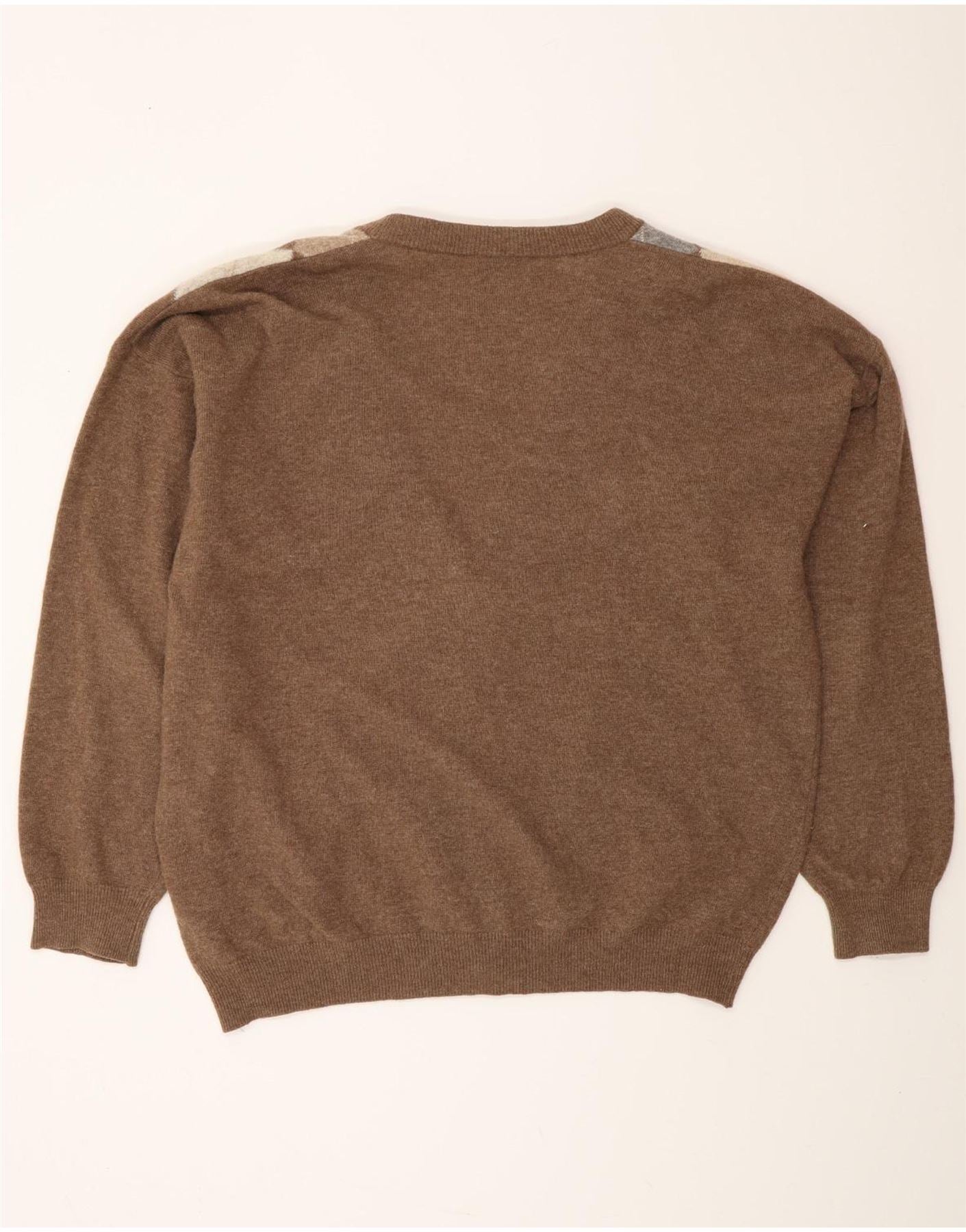 MONELLO Mens Cardigan Sweater IT 52 Large Brown Argyle/Diamond Wool