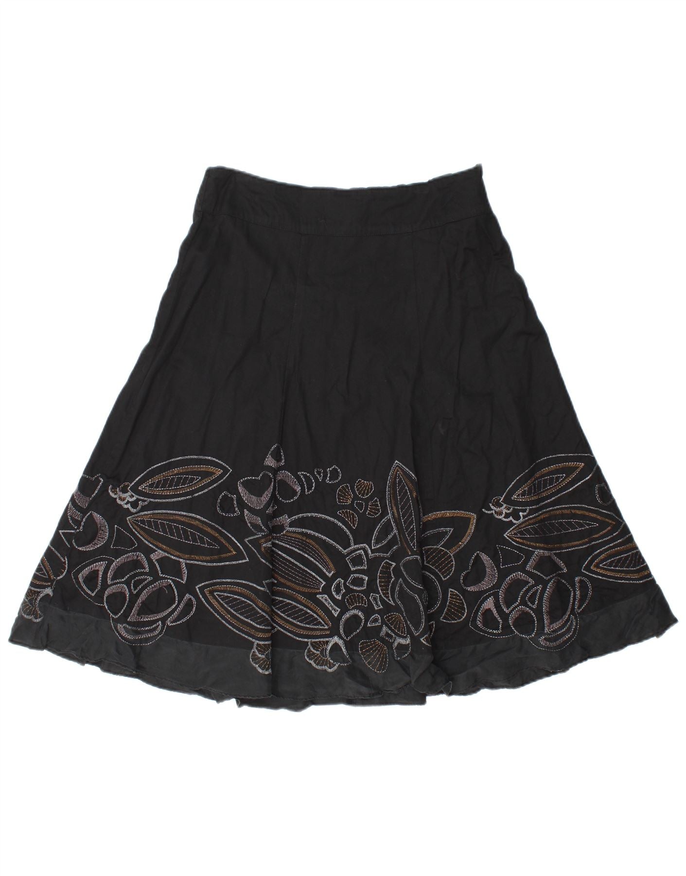 MONSOON Womens Abstract Pattern A-Line Skirt UK 10 Small W30 Black Cotton
