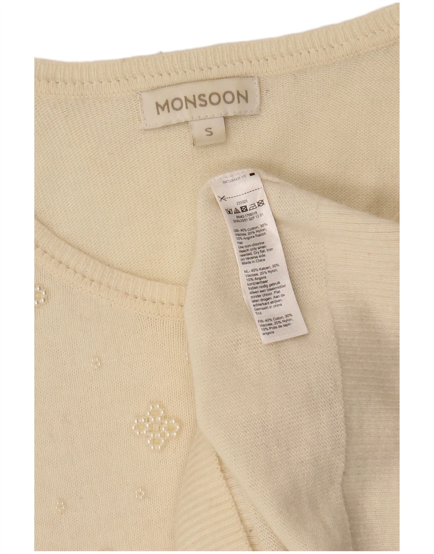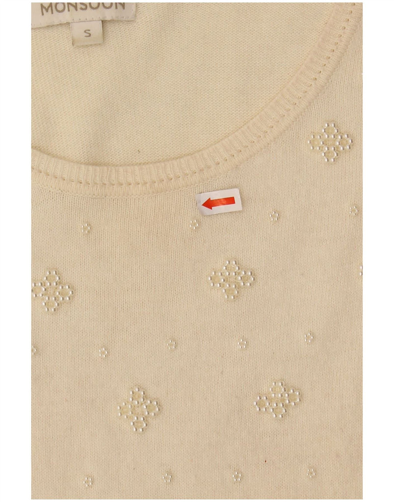 Monsoon Womens Boat Neck Jumper Sweater UK 10 Small Off White Floral Cotton