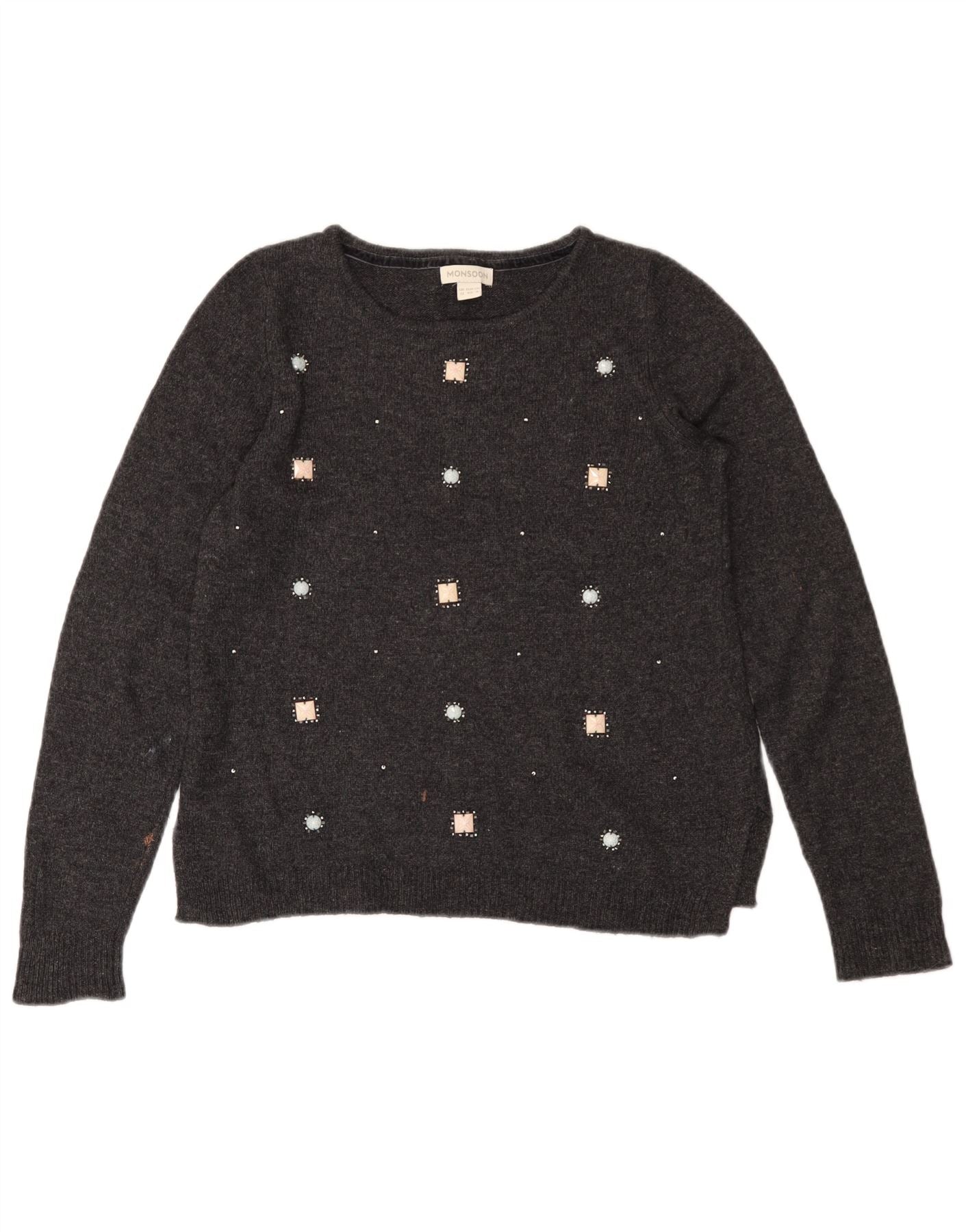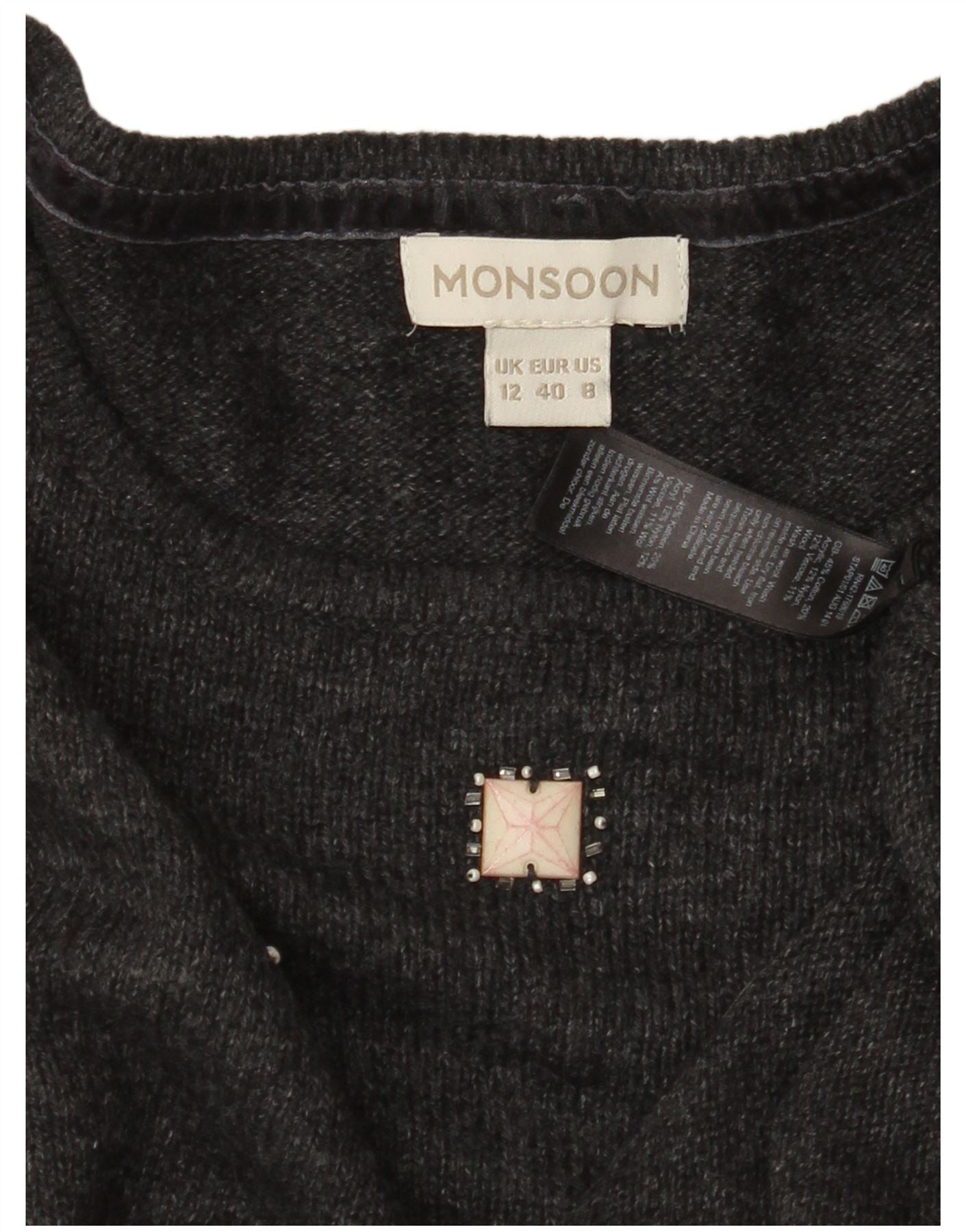 MONSOON Womens Boat Neck Jumper Sweater UK 12 Medium Grey Cotton