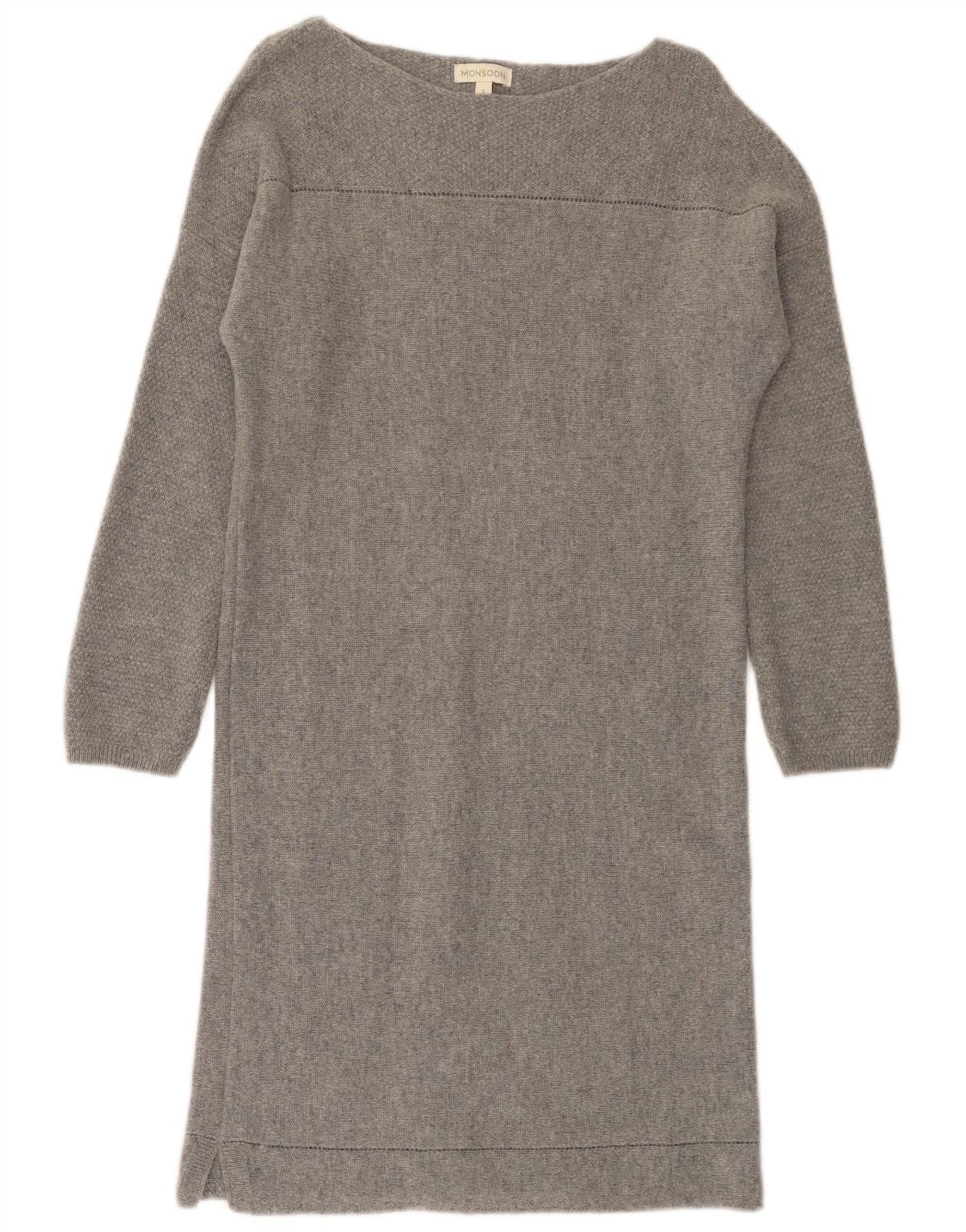 MONSOON Womens Long Sleeve Jumper Dress UK 10 Small Grey Wool