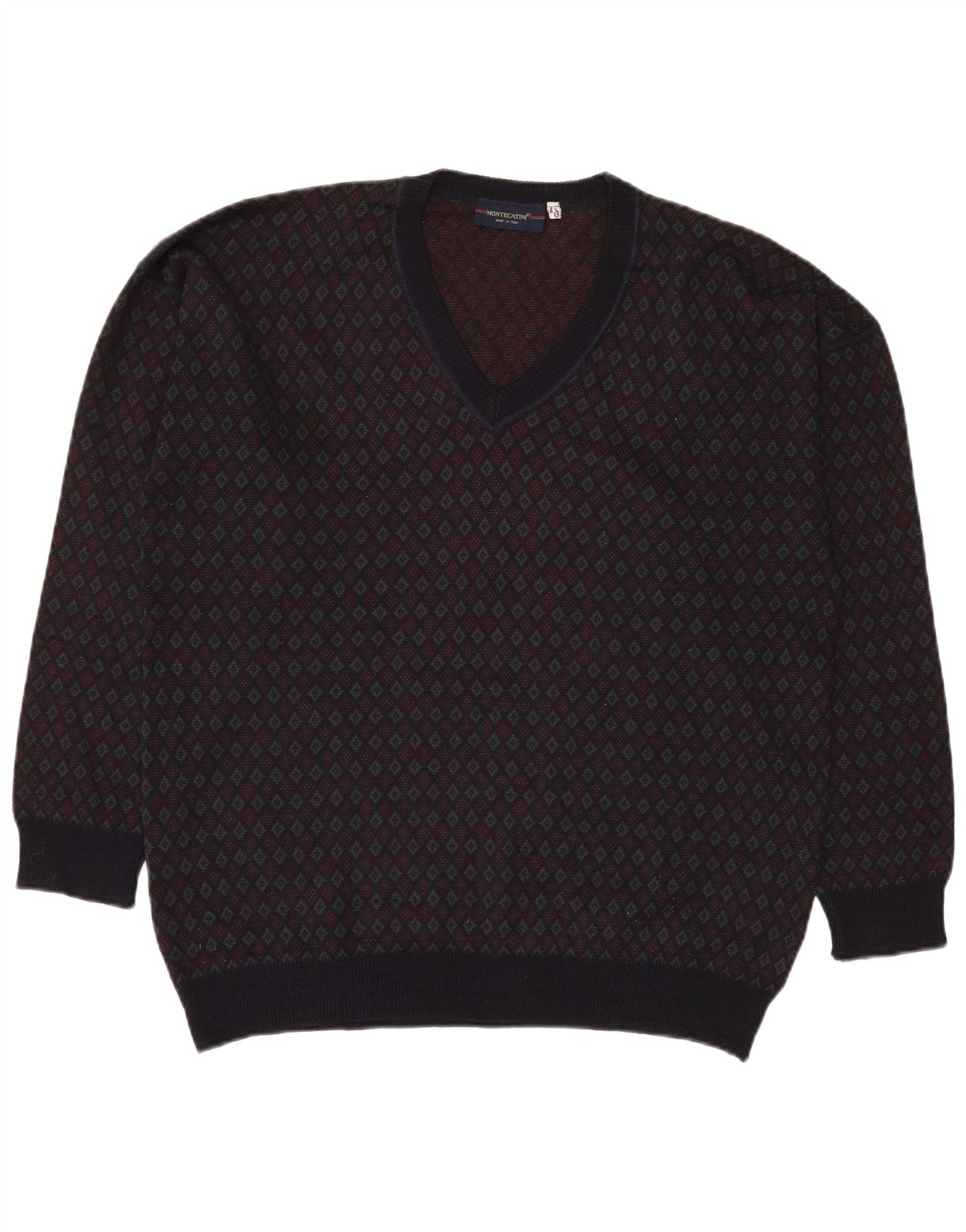 MONTECATINI Mens V-Neck Jumper Sweater Large Multicoloured Geometric