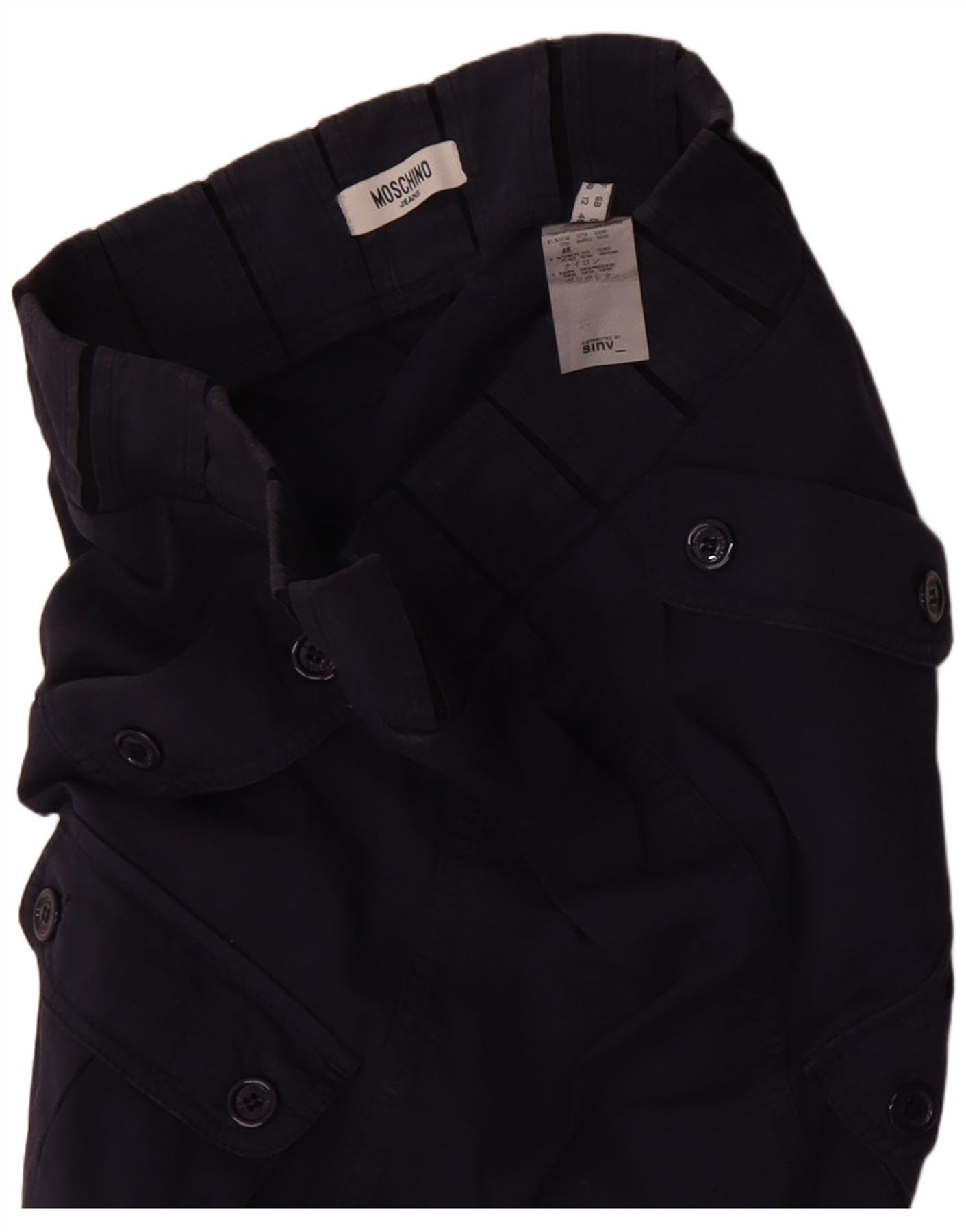 MOSCHINO Womens Midi Cargo Skirt UK 12 Medium Navy Blue Cotton
