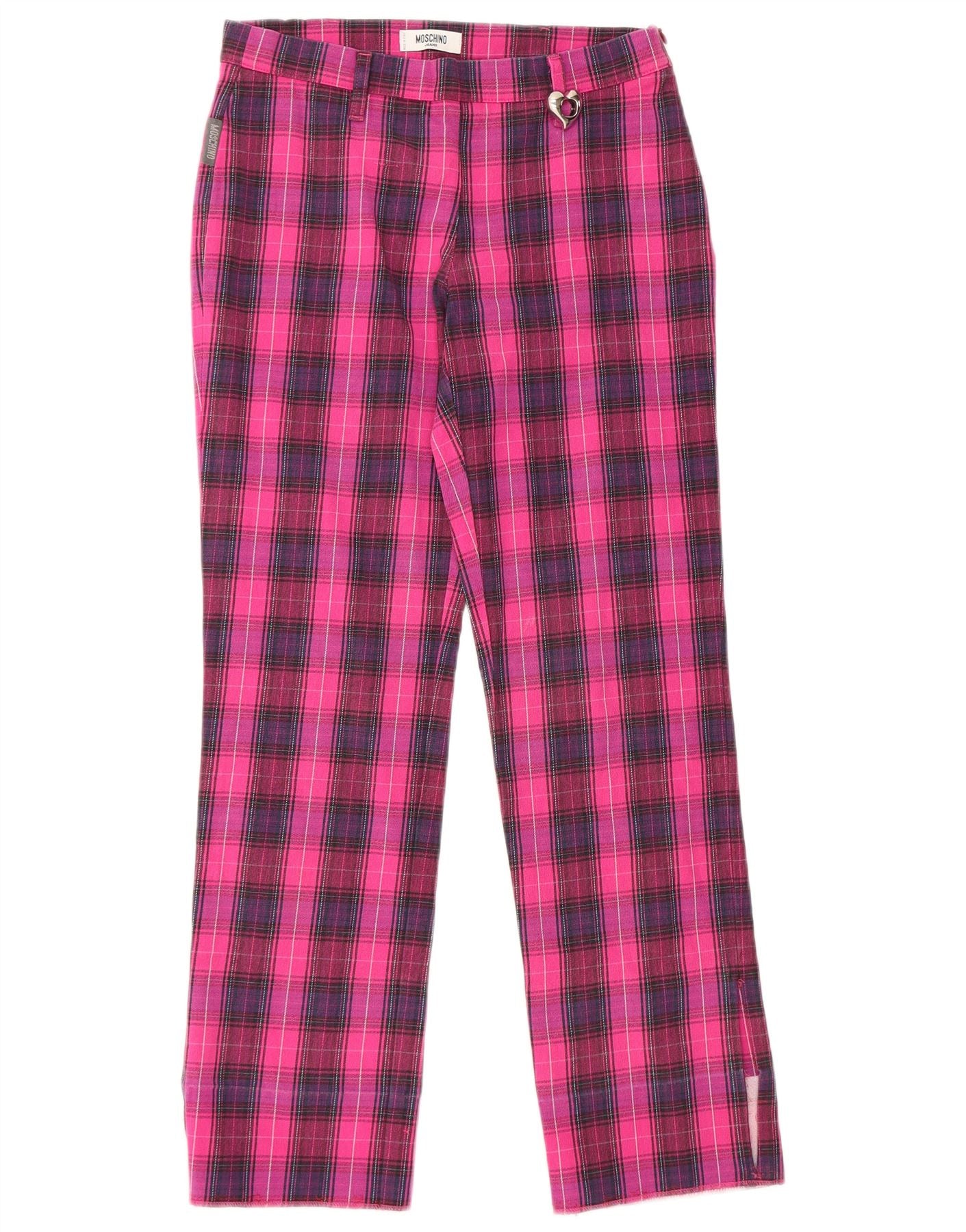 MOSCHINO Womens Straight Casual Trousers UK 10 Small W28 L28 Pink Check