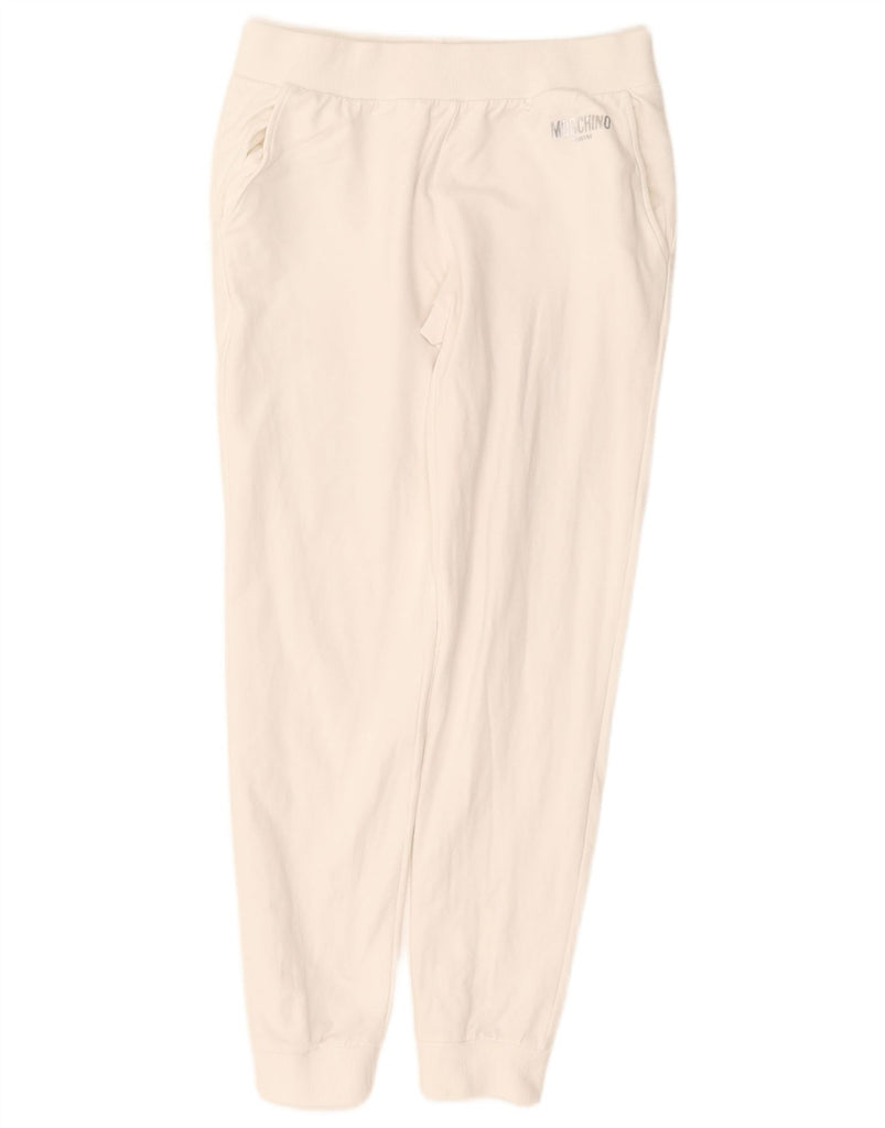 MOSCHINO Womens Tracksuit Trousers Joggers UK 12 Medium White Cotton