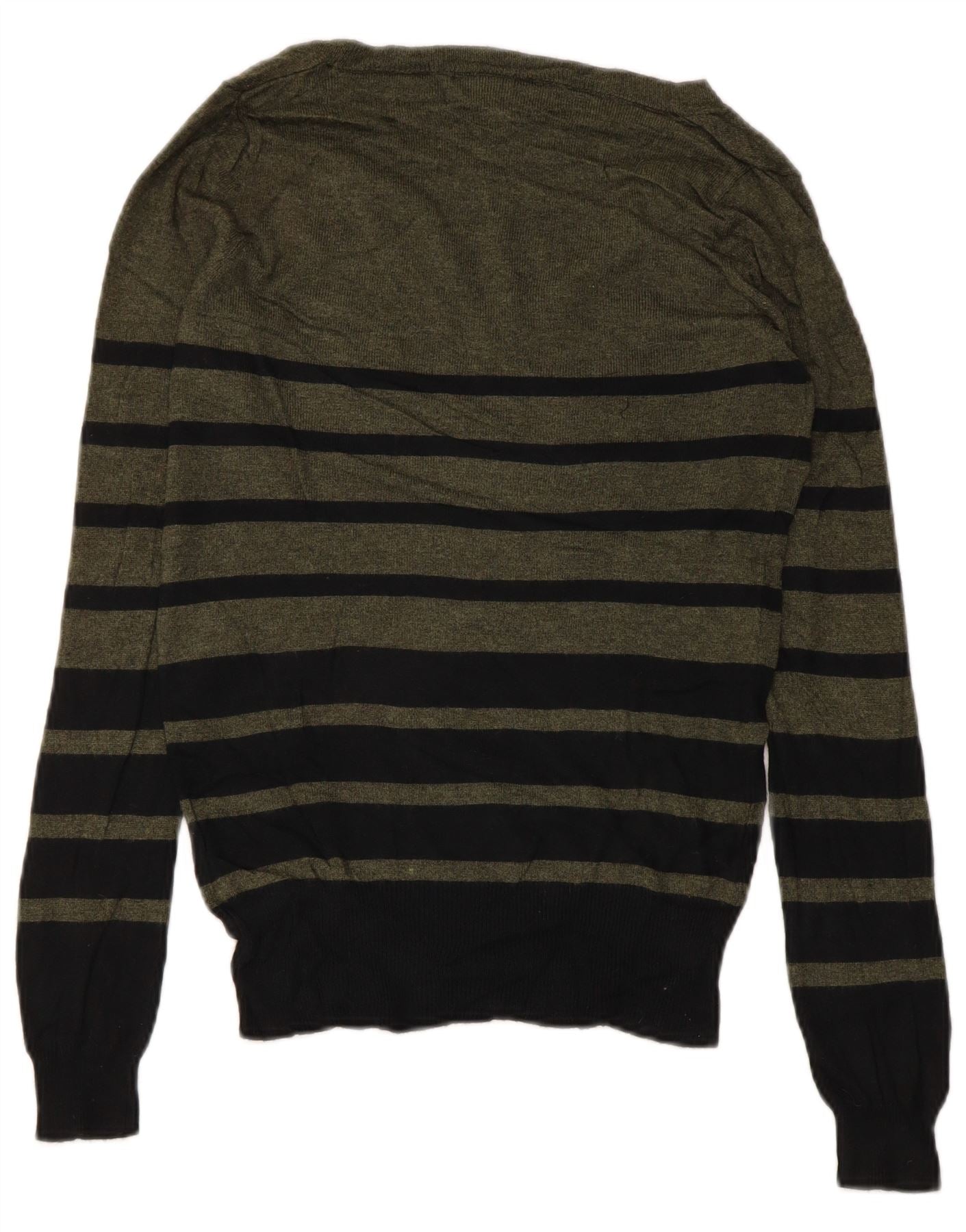 MOSSIMO Womens V-Neck Jumper Sweater UK 6 XS Khaki Striped Nylon