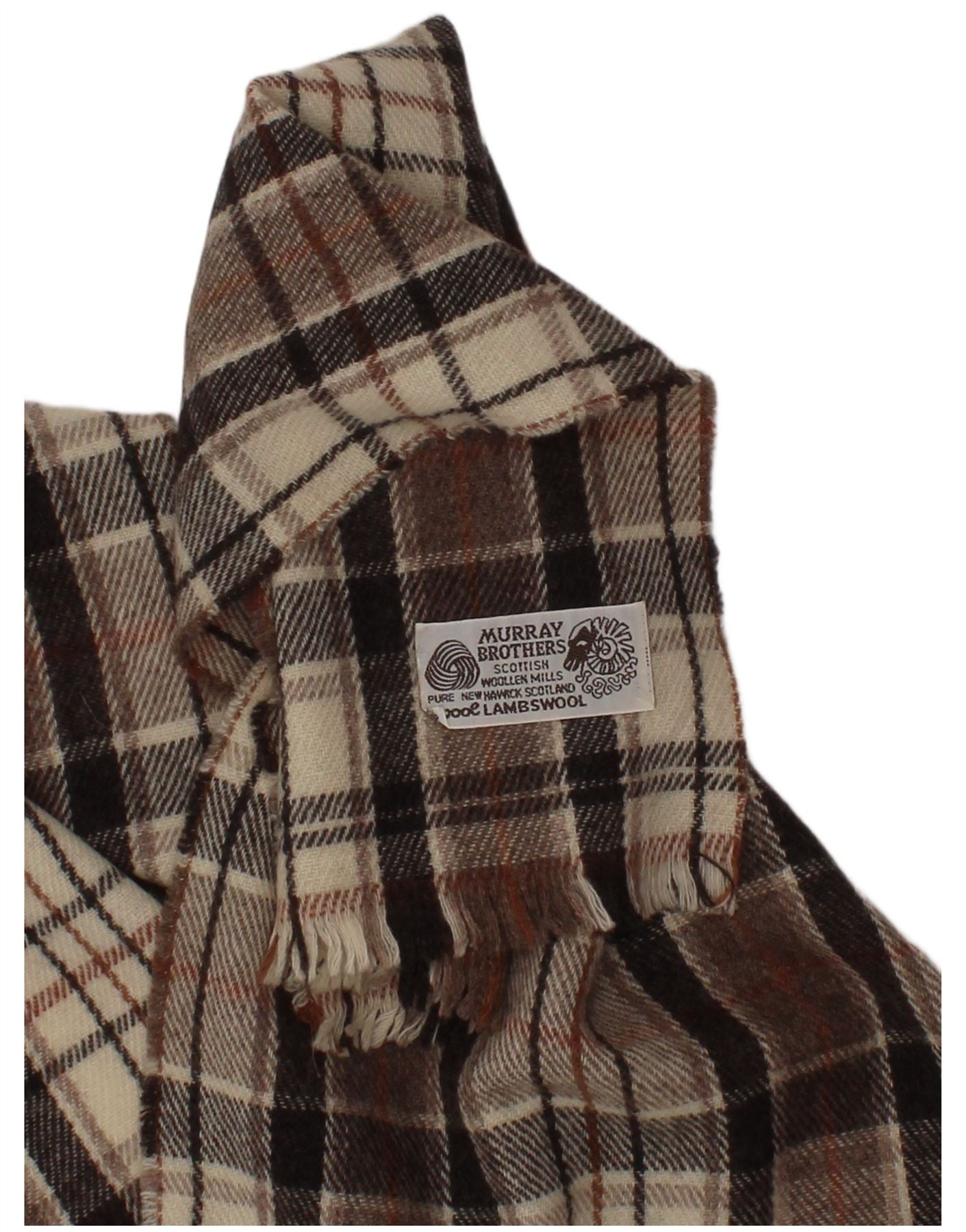 MURRAY BROTHERS Womens Rectangle Scarf One Size Brown Check Lambswool