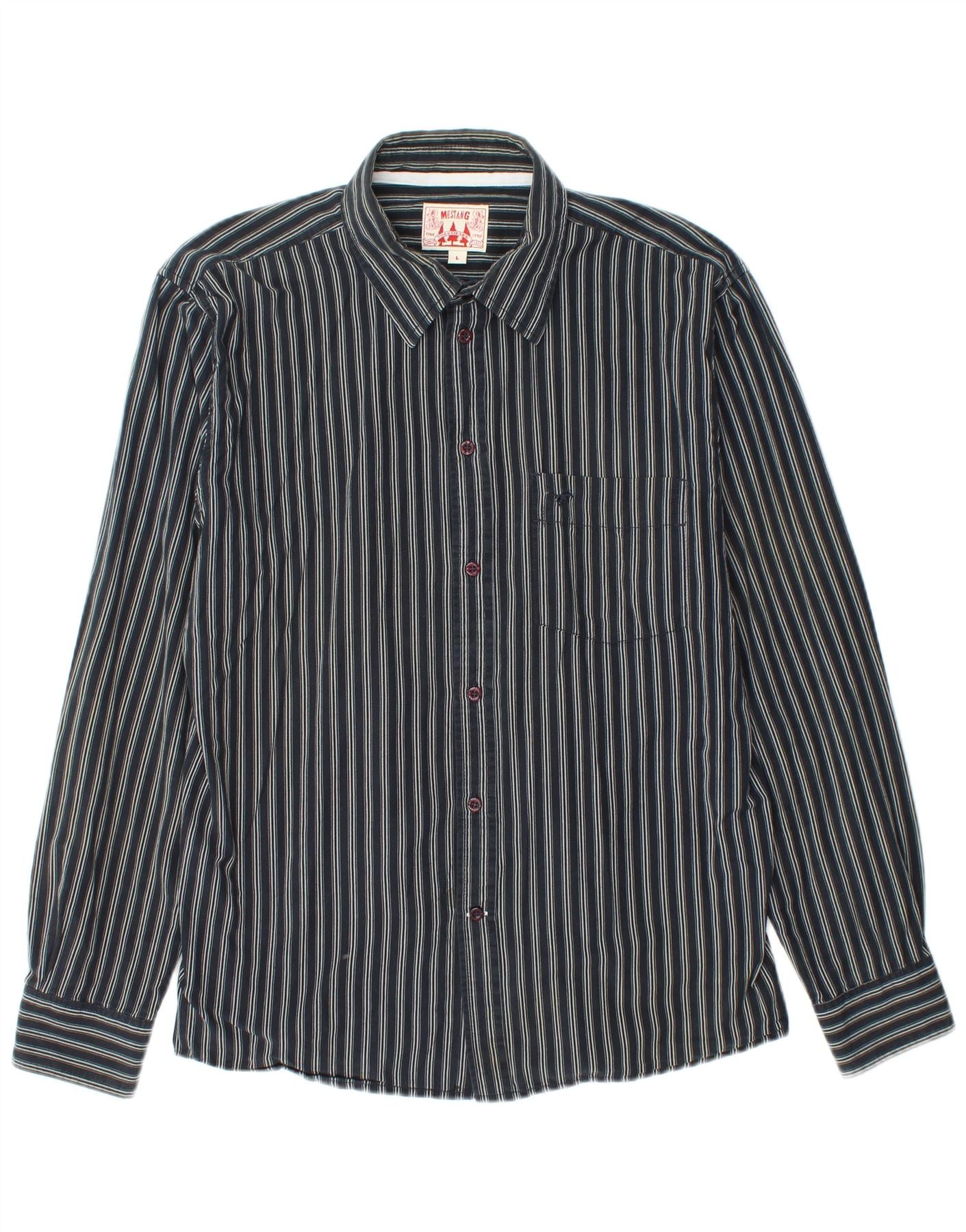 MUSTANG Mens Shirt Large Black Striped Cotton