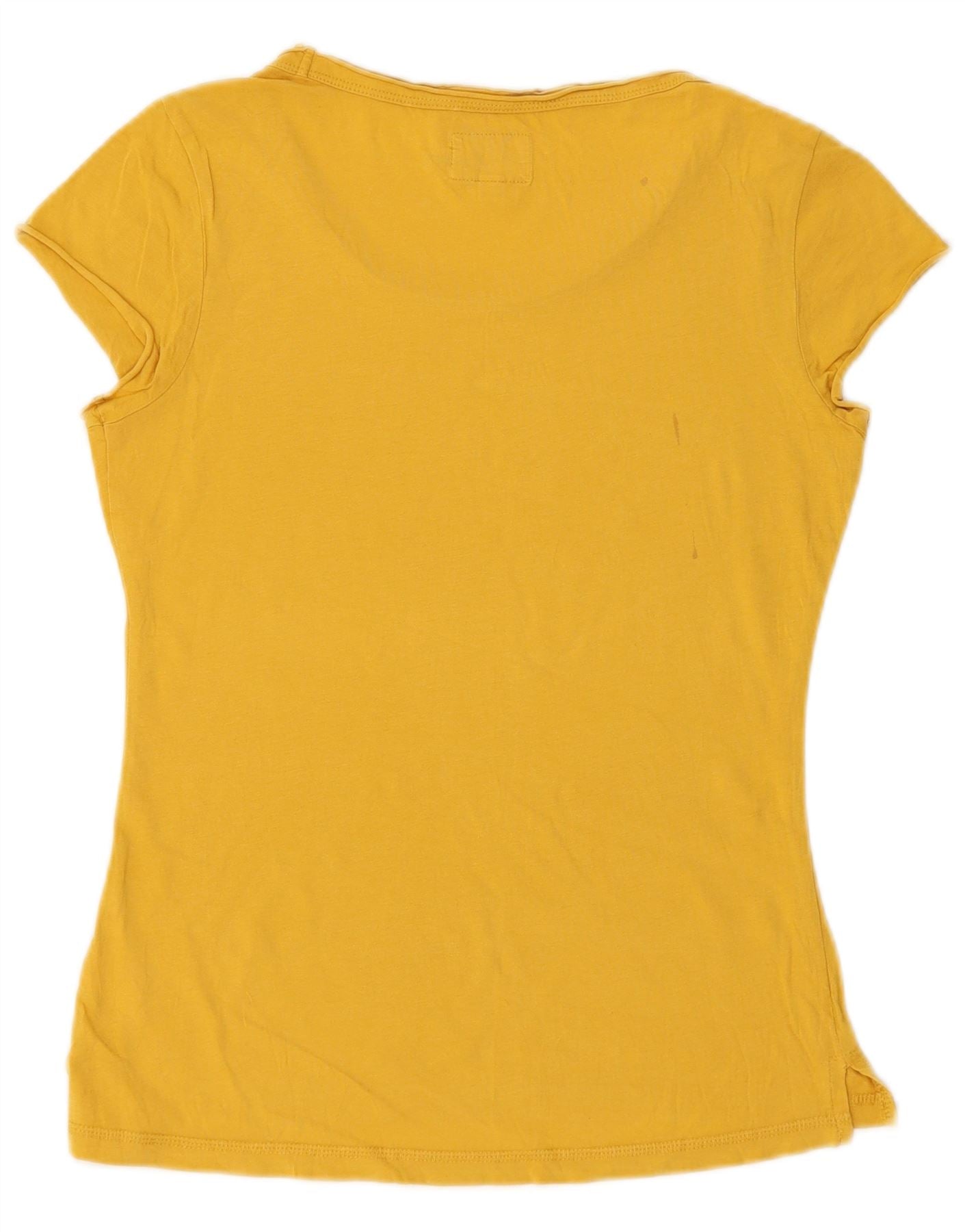 MUSTANG Womens Graphic T-Shirt Top UK 10 Small Yellow Cotton