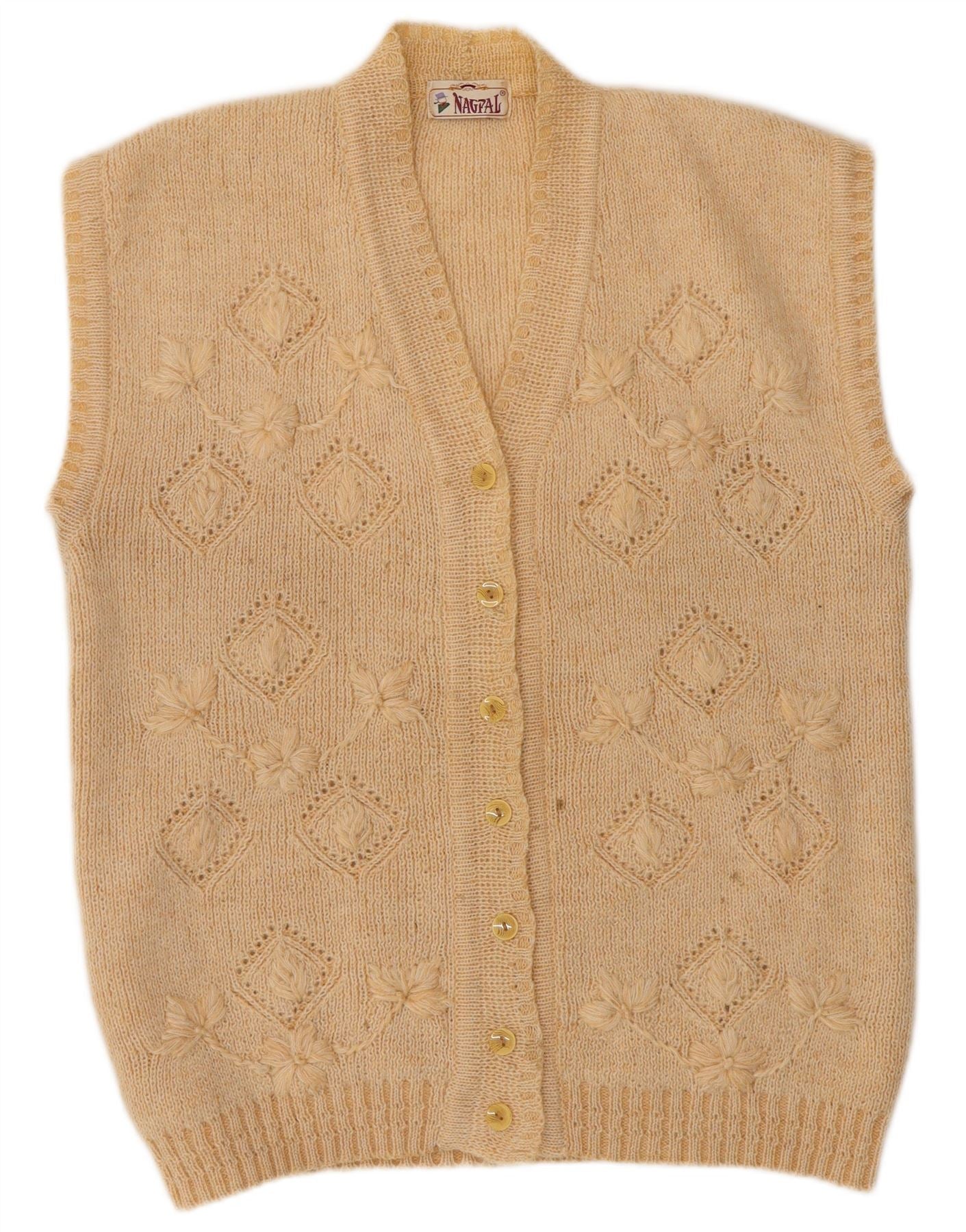 NAGPAL Womens Sleeveless Cardigan Sweater UK 16 Large Beige Floral